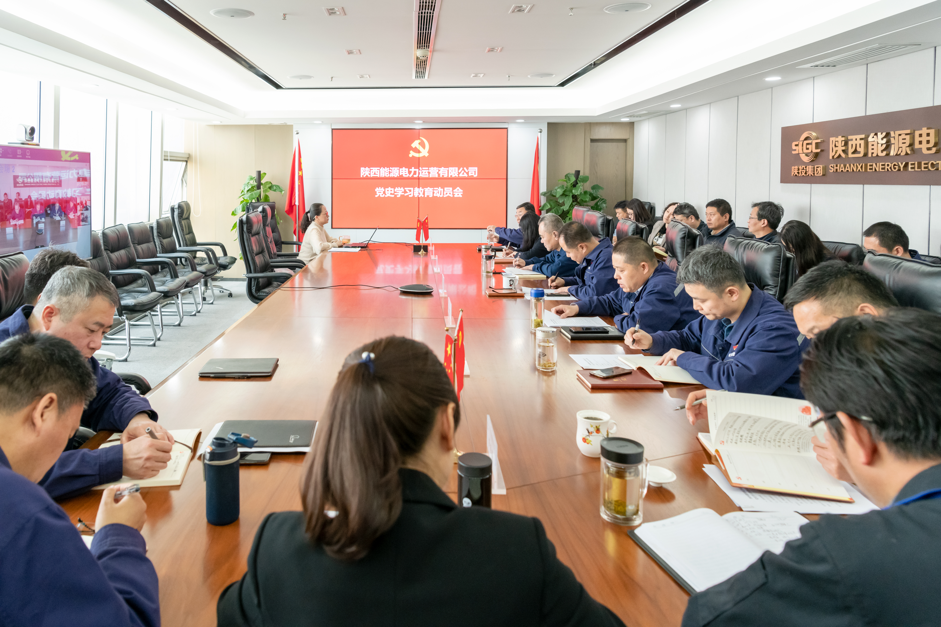 会议以视频会议形式召开,公司领导班子、中层管理干部及各党支部、团支部委员参会。