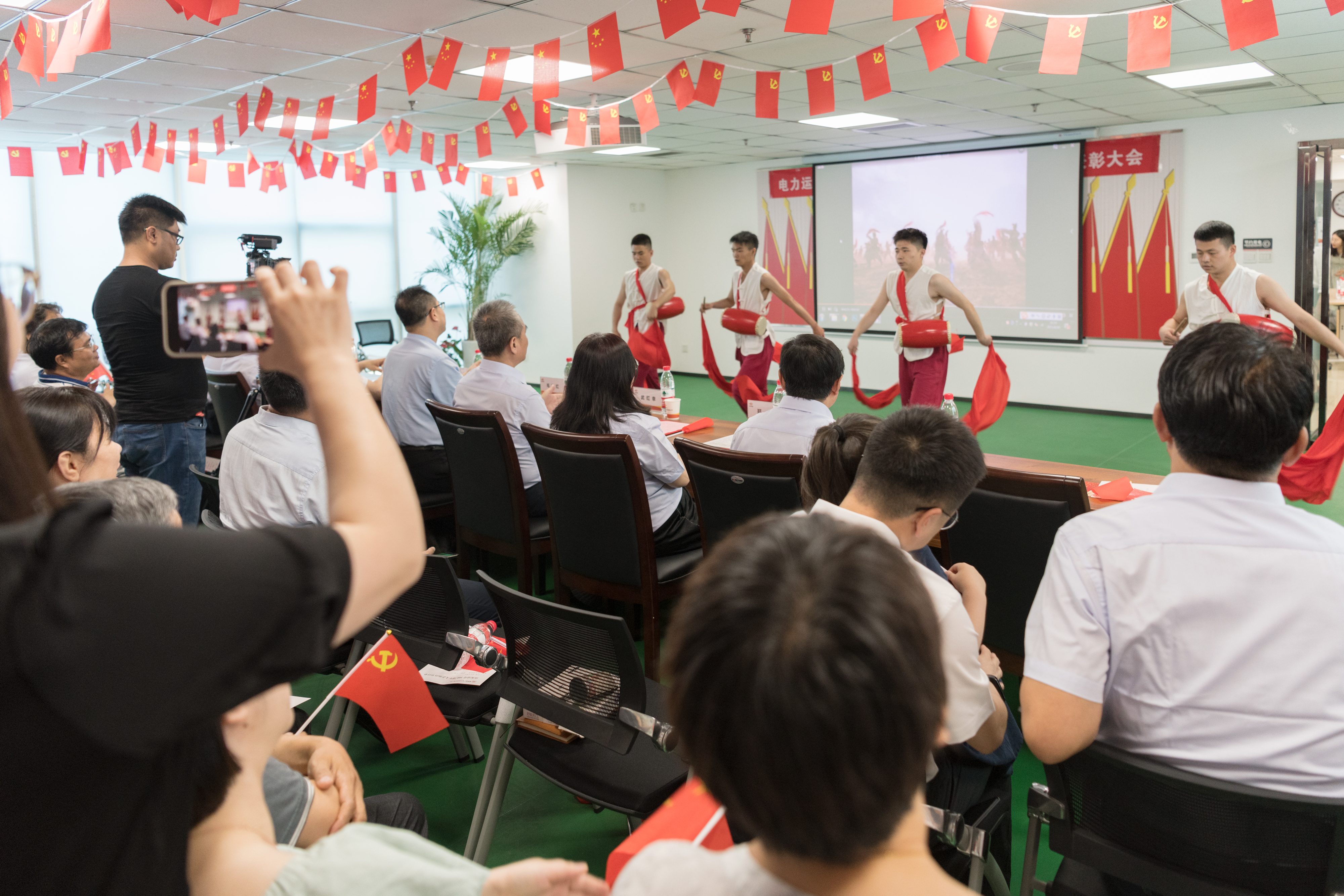 来自于公司各项目部、电力试验研究中心及机关各部室的干部职工以大合唱、腰鼓表演、军体拳表演、原创诗歌朗诵、器乐演奏等多种艺术表演形式回顾党的光辉历程、歌颂党的伟大成就,展现了电力运营广大干部职工一心向党、奋发有为的精神风貌。