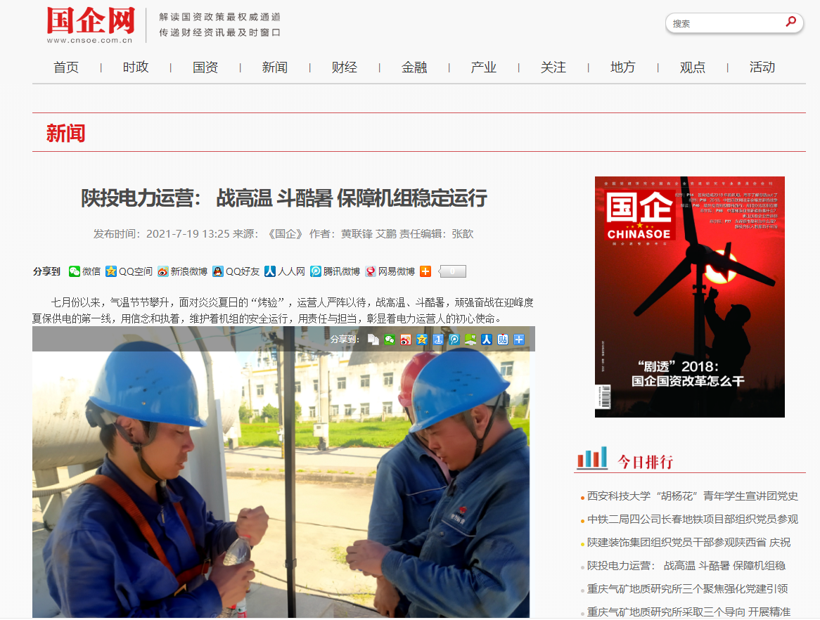 七月份以来,气温节节攀升,面对炎炎夏日的“烤验”,运营人严阵以待,战高温、斗酷暑,顽强奋战在迎峰度夏保供电的第一线,用信念和执着,维护着机组的安全运行,用责任与担当,彰显着电力运营人的初心使命。