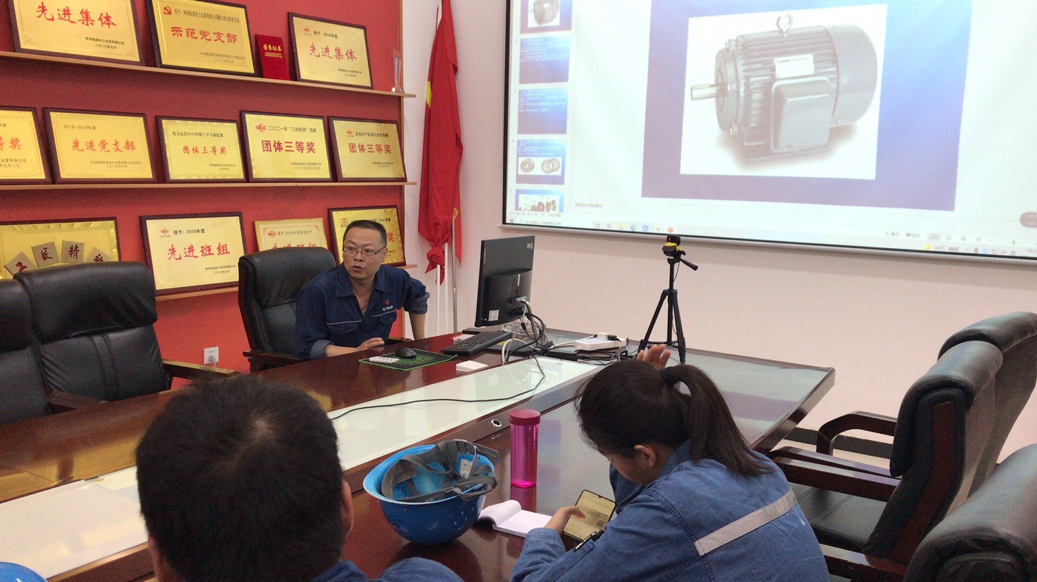 此次培训采用多媒体PPT课件教学和设备检修实例现场讲解相结合,从低压电机原理、基本电气参数、各部件功能及解体检修流程等方面做了详细讲解。参培人员通过理论和现场学习电机解体流程技术要点,强化了对设备的直观认识。