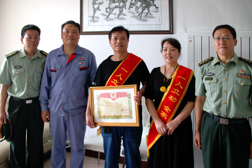 7月23日,咸阳市渭城区武装部一行送来喜报,正阳镇政府、公司渭河项目部等相关单位人员为尚照熙一家送去关怀与祝福,共同见证了这激动人心的一刻。当天上午,咸阳市渭城区武装部一行上门为尚照熙夫妇戴上“一人立功,全家光荣”的鲜红绶带,并送上喜报和慰问金。