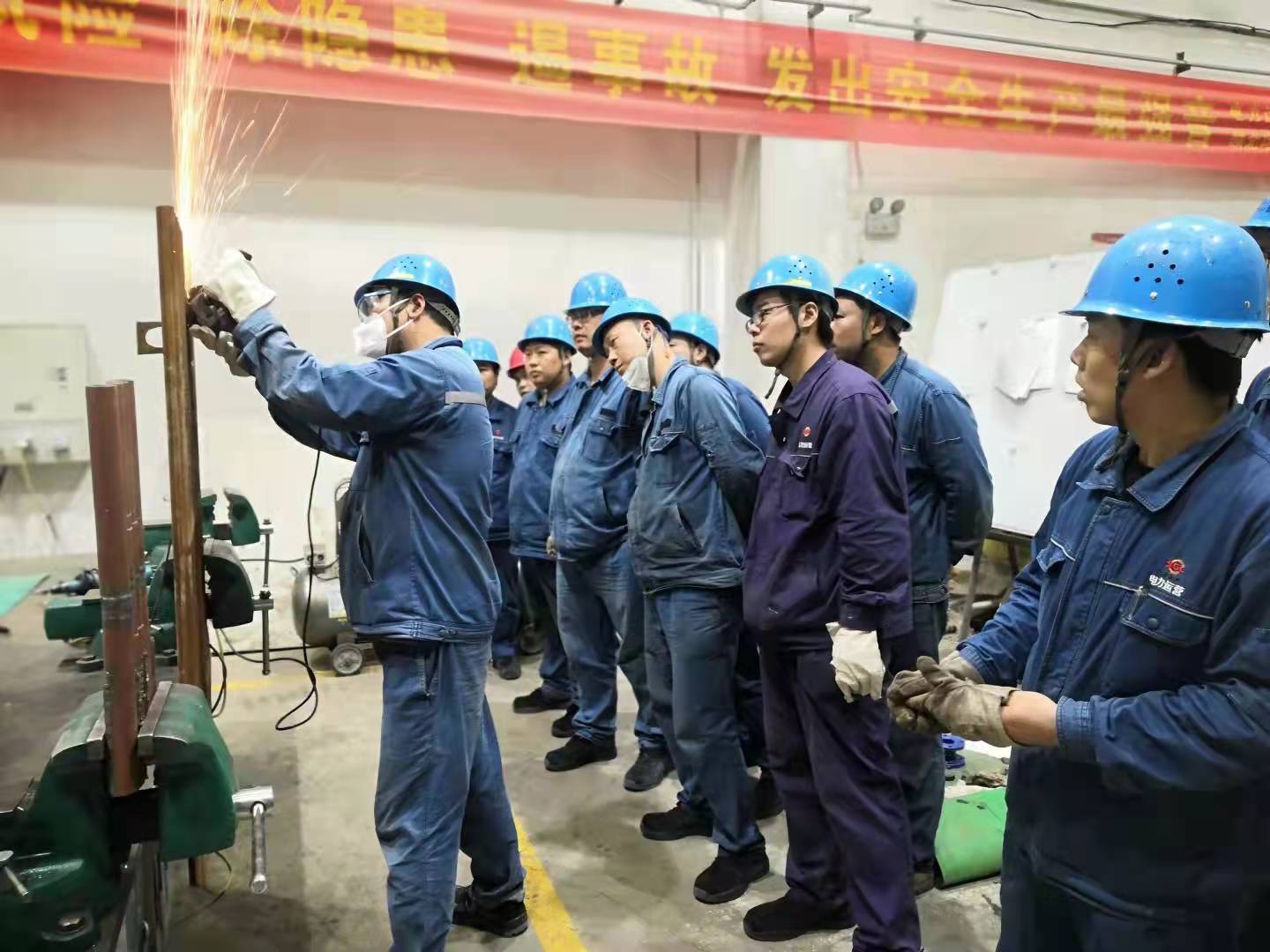 汽化水班组织新员工从从设备参数、实际安装选用标准、阀门结构等方面进行实操培训;燃煤班对主要设备的功能特点、运行参数进行了详细讲解;锅炉班组织员工学习检查使用电动工器具,现场纠正不规范动作,提醒危险点,保证受训员工正确安全的使用电动工具;仪电队由于工作任务较多,班组将技术培训安排在了晚饭后,各班队本班所辖的设备电路系统图进行了详细讲解。