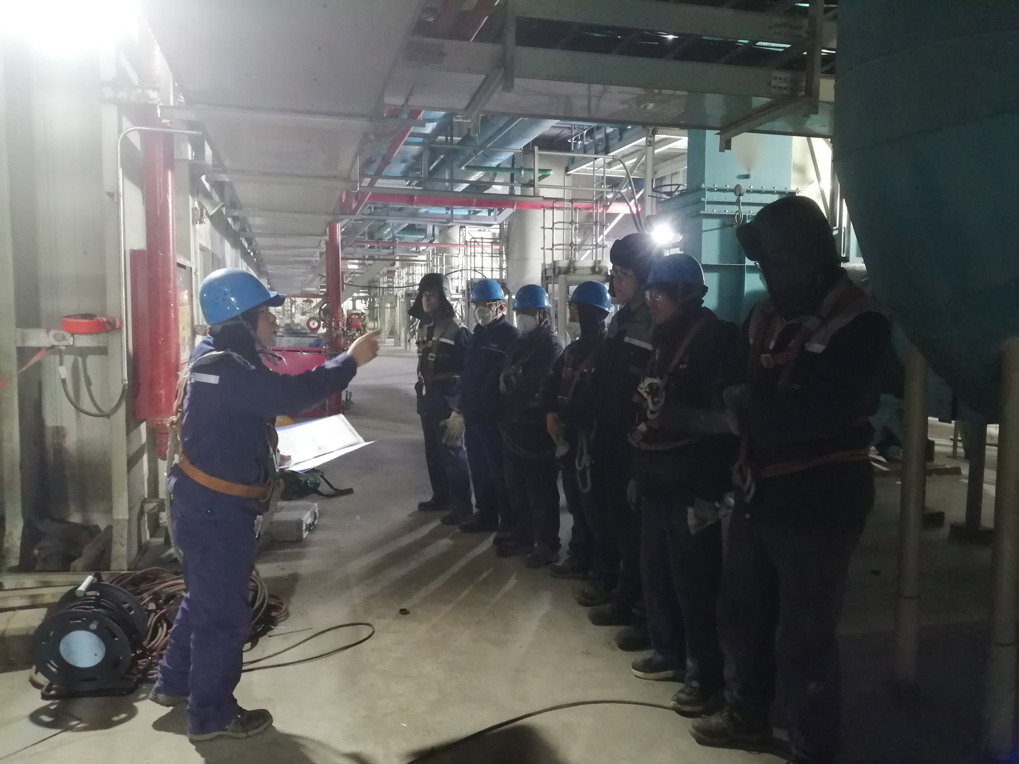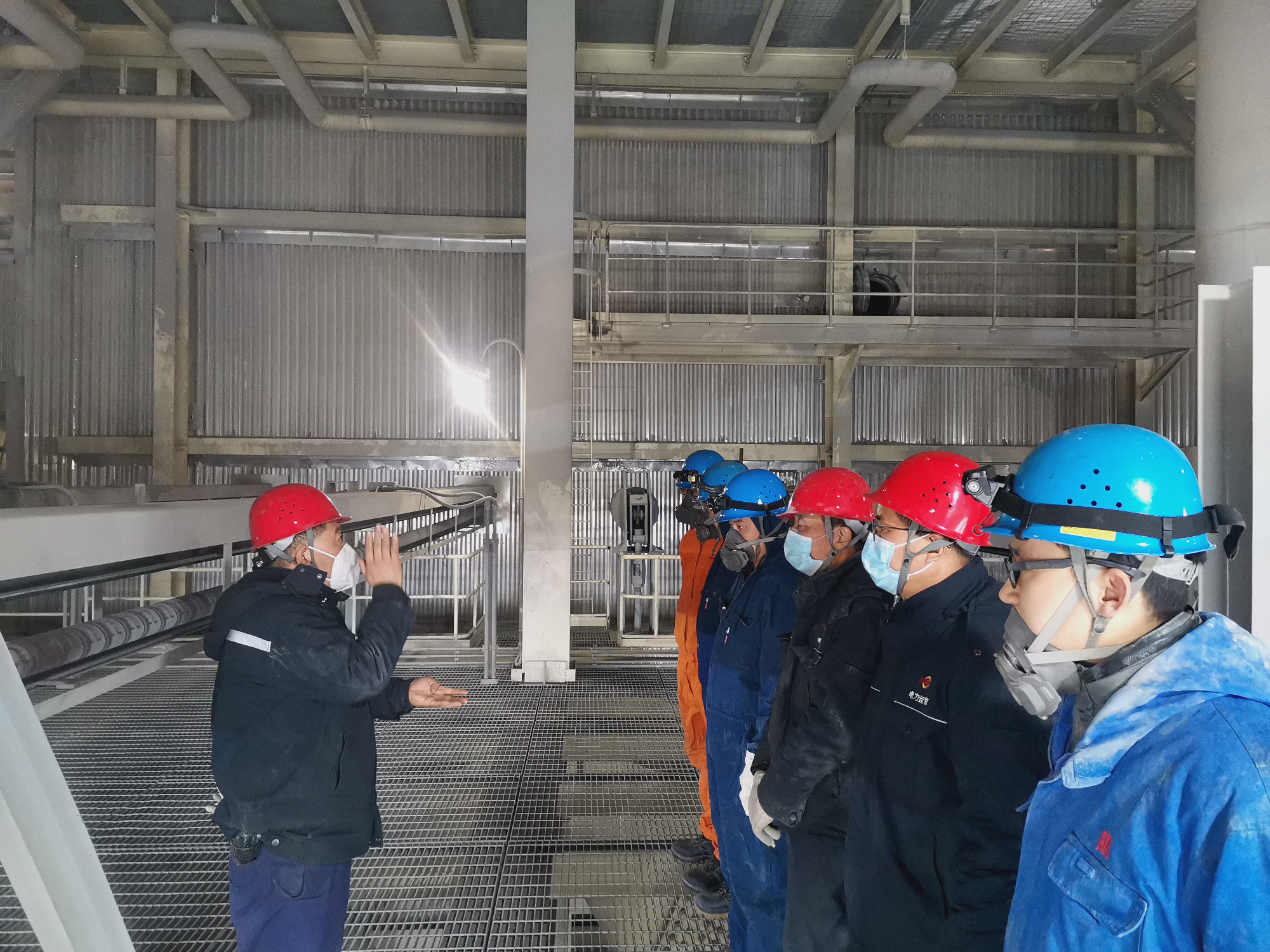 近期,吉木萨尔项目部抽调10余人配合施工单位对吉木萨尔发电#1炉冷灰斗进行抢修,实行白班夜班两班轮流工作,对冷灰斗处水冷壁管道进行切割、打磨、制口、配管,顺利完成吊运承重梁、校平梁等工作,并积极配合业主方完成临时安排的其它工作;为防止#1机组A原煤仓内积煤自燃,项目部严格落实安全技术措施、原煤仓防火等措施,开展原煤仓内积煤排放工作。