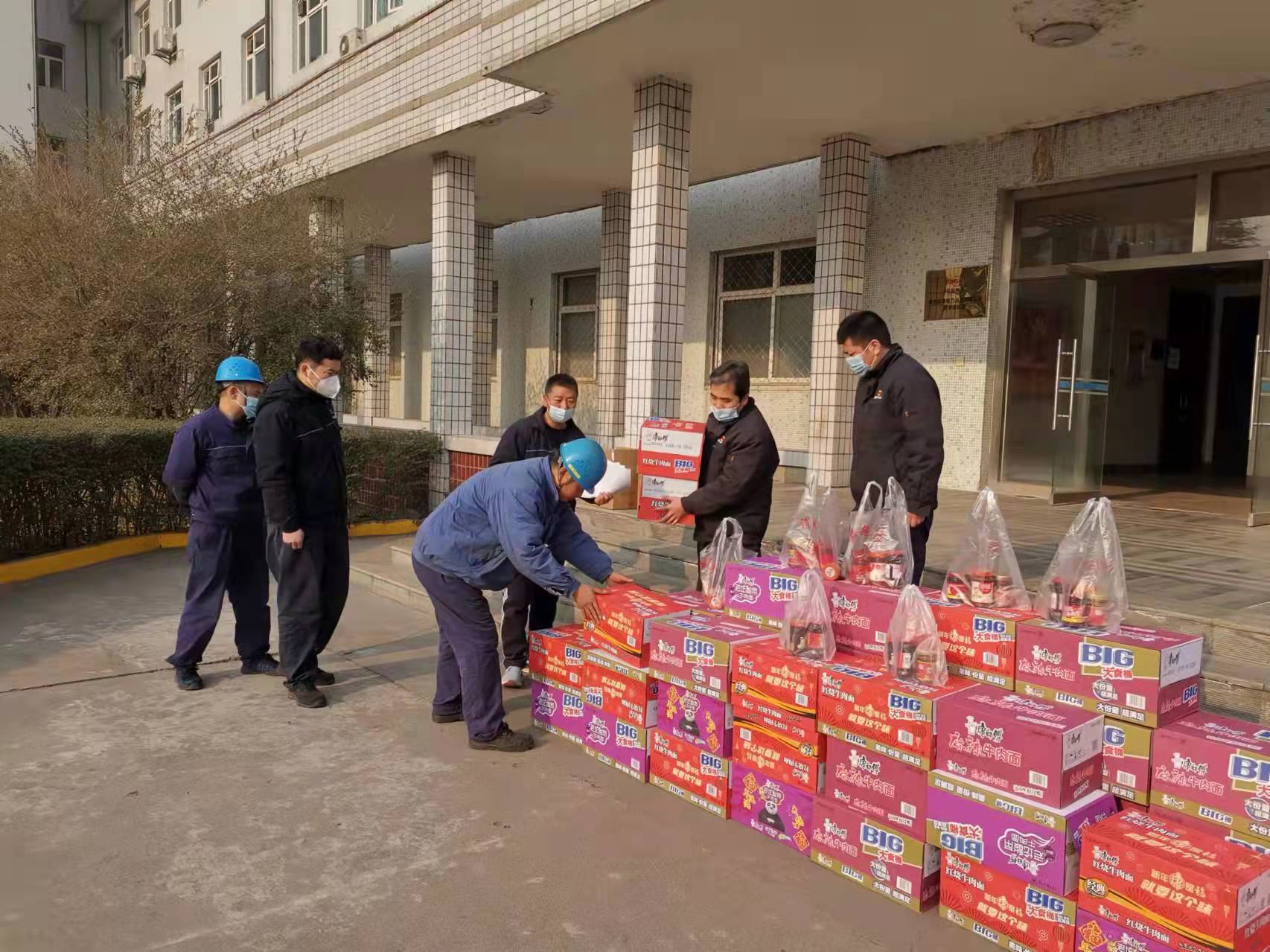 赵石畔项目部党支部为坚守一线的员工购买食品和各类防疫物资,在这个寒冷的冬天给大家带来了温暖。