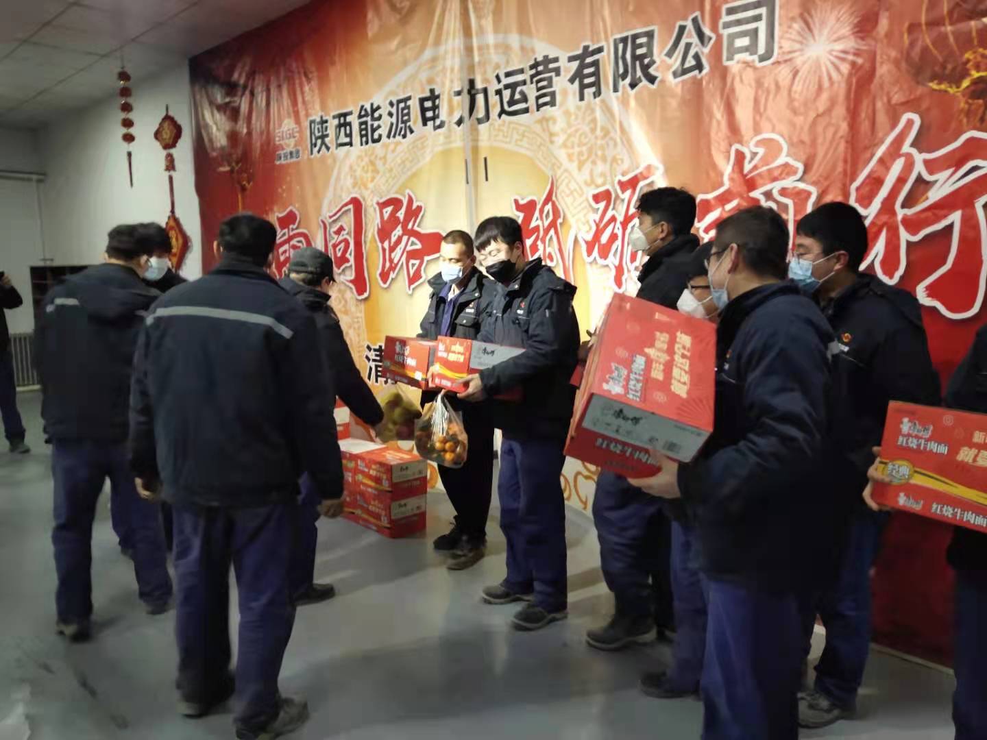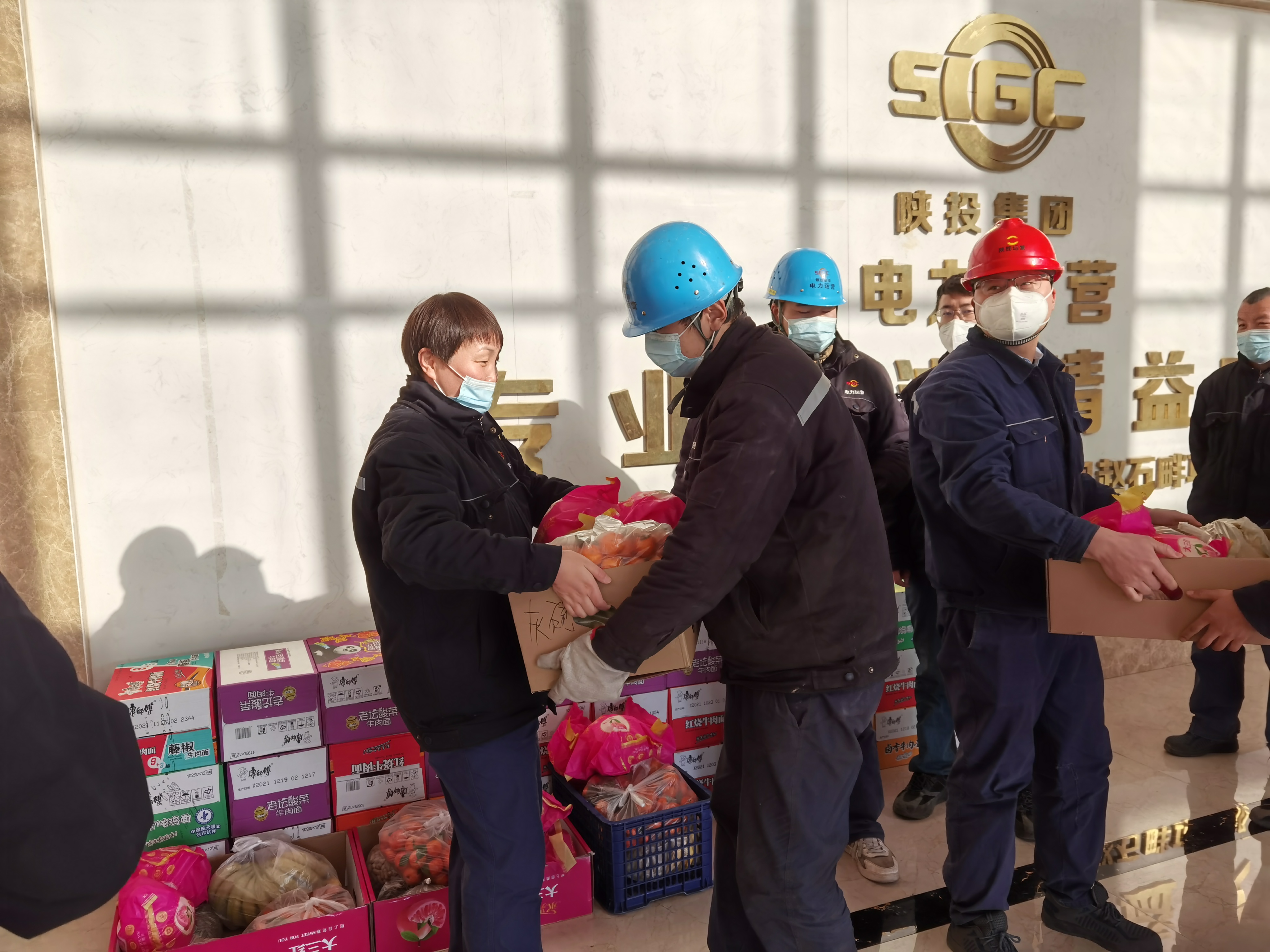 清水川项目部党支部及时采购生活物资,慰问战斗在保电保热第一线的党员以及职工。