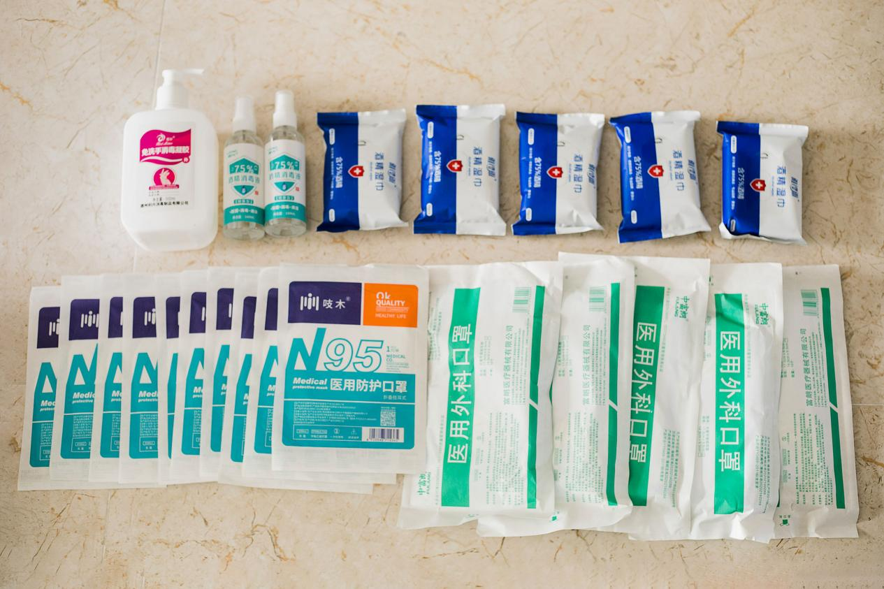 吉木萨尔项目部党员干部积极行动,从驻地周围采购方便面、消毒液及医用口罩等物资,把公司党委的关心、关爱一一送到职工手中。