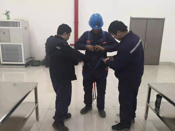 为提高基层职工的坠落防护应知应会安全知识及现场实操能力,吉木萨尔项目部组织各班组开展了正确使用安全带的培训活动。