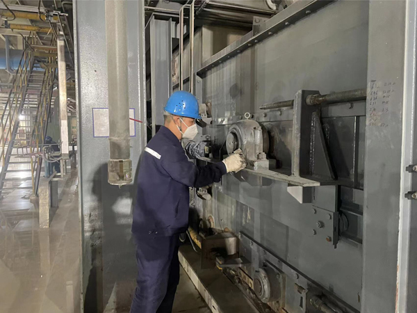 在#3机干渣机检修中,为高质量完成干排渣钢带机检修工作,他不怕脏,不怕累,积极配合运行开关液压关断门。截取钢带需要高超的技术和经验,需判断截断钢带的最佳位置、网口交叉连接等,尤其是在调整钢带的张紧装置时,两边张紧的距离必须保持一致,避免钢带跑偏。他带领班组人员想办法、出点子,从钢带两侧观察孔处割开钢带外壳壳体,将积渣一点点清除,经过3个多小时的奋力抢修,最终使排渣系统恢复正常运行,保证了机组的正常负荷运行。