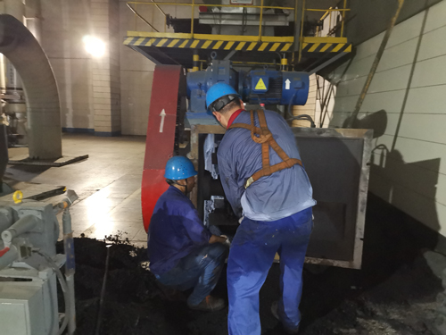 因受近期市场不利因素影响,煤炭质量较差,导致除灰系统管道、阀门故障频频,锅炉制粉系统缺陷接连不断,设备抢修、维护工作量激增。6月22日晚上8点,因煤质原因导致#4炉甲、乙给煤机及磨煤机入口管道煤粉堵塞达5米之长,严重威胁设备安全运行,消除隐患迫在眉睫。面对严峻挑战,项目部快速响应,立即集结管理干部和班组支援人员赶赴现场,和制粉班员工并肩作战。
