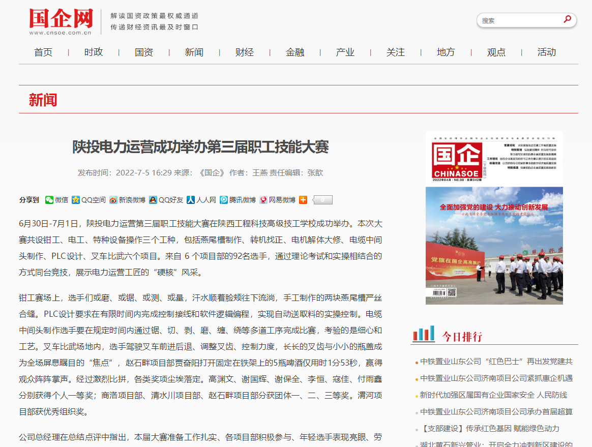 国企网:陕投电力运营成功举办第三届职工技能大赛