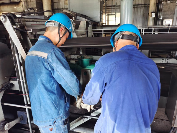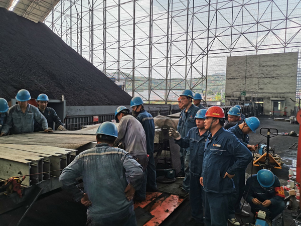 输煤专业加强煤场设备巡检,全力保证机组“口粮”。钢结构干煤棚内、封闭煤场内气温高达50摄氏度,落煤筒内空间狭窄,输煤班检修人员细致检查每块衬板是否有严重磨损及起翘,保障机组正常供煤。每次外出巡检,除了随身携带维修工具,医药箱也是必备品,热得实在受不了就喝点藿香正气水。一天下来,工作服都泛起了片片白色的汗渍。“有时设备故障,在厂房一呆就是一天,这种滋味就像蒸桑拿,但是高温天气下只有细之又细、慎之又慎,才能保证设备安全。”电气专业员工李彪说道。他对这种“烧烤”体验早已习以为常。
