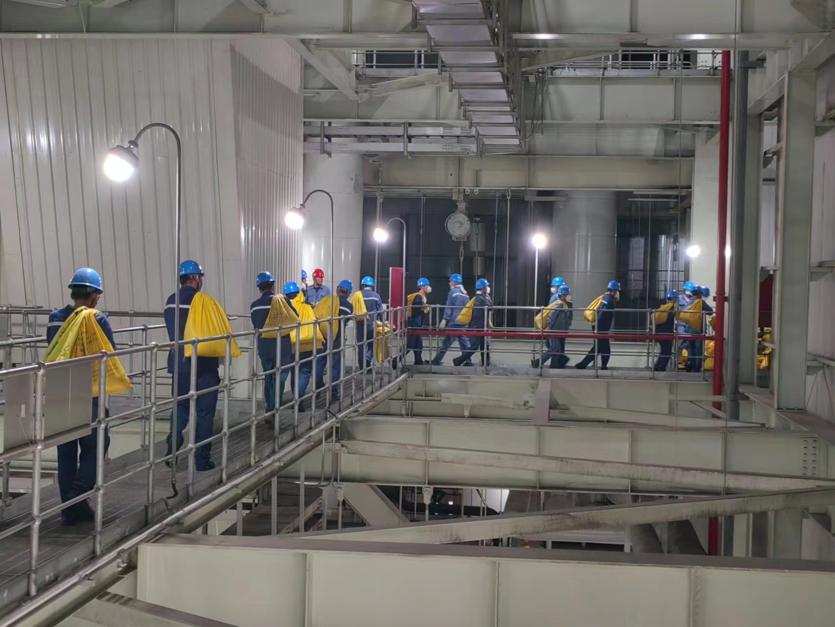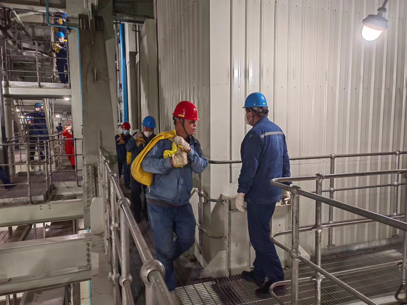 8月14日,一支由党员、退役军人、管理人员、青年员工组成的队伍,赶赴锅炉房4层进行灰渣袋倒运,室内高温足以让人汗流浃背,一千多袋灰渣足以让平常人畏惧退缩。大家佩戴好劳动防护用品,铲灰、扫灰、装袋,井然有序,几十斤重的灰渣袋,两手一甩送上肩膀,分量轻的,自我“加压”再来一袋。