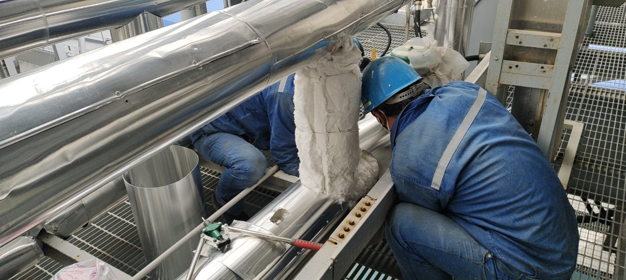 商洛项目部坚持全面排查、不留死角、措施完善、执行到位,将设备防寒防冻责任落实到设备责任人。各专业以表格化形式明确检查项目、周期和标准,排查各类管道跑、冒、滴、漏问题,对发现的问题及时处理。对全厂生产系统以及厂区采暖设施进行“地毯式”排查,重点摸排厂房门窗、水暖系统、供热系统管道保温等存在的安全隐患,并有针对性地制定防范措施。对室内外设备、热网管线及各类阀门保温进行恢复和修补,为设备穿上了厚实的“暖衣”。