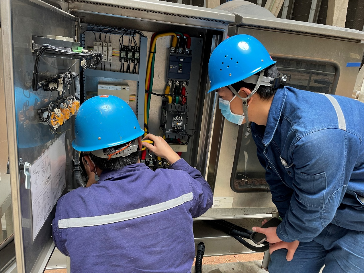 渭河项目部紧紧围绕“查、改、管”进行全程跟踪,实行闭环管理。各专业对机组设备防冻部位进行全面摸底检查,电气专业全面检查伴热控制箱,确保伴热带在冬季能够可靠运行;热工及除灰专业检查完善电伴热及汽伴热。关闭机房大门及窗户并悬挂棉门帘,补全缺失的机房玻璃及保温,做到防寒防冻工作无死角。