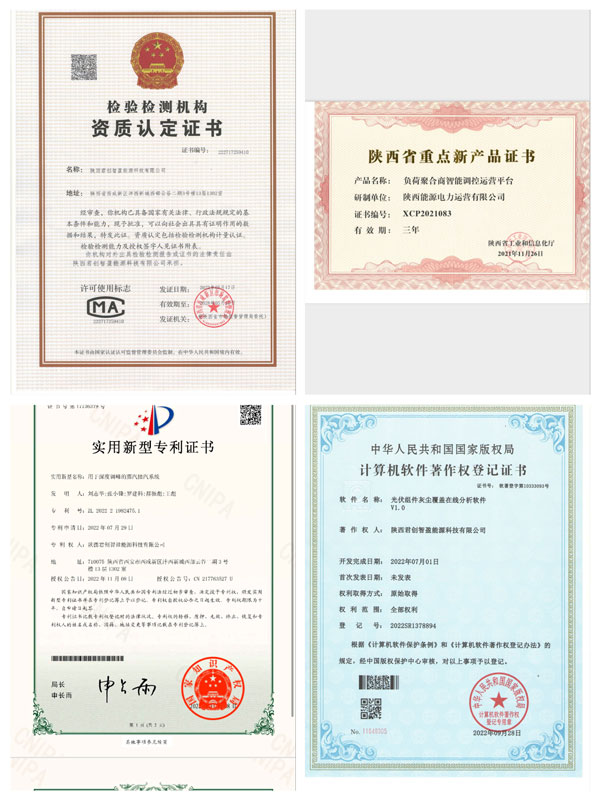 在科技创新上持续塑造新优势。1项成果获得陕西省创新方法大赛一等奖、全国决赛优秀奖;1篇论文荣获中国电力技术市场协会电力行业新技术应用优秀论文一等奖;参加2022年陕西省企业“三新三小”创新竞赛获优秀奖;同西安工程大学深入合作,2项成果列入陕西省2022年度重点新产品,已在新疆吉木萨尔发电项目落地;与西安工业大学合作,立项了“光伏组件灰尘覆盖损耗在线分析系统及清洗系统”项目,研发出了君创科技首款科技产品。累计获得国家专利10余项,发明专利受理1项,软著授权1篇。顺利取得CMA资质,成为集团首获该项认证的企业,公司检验检测水平及能源科技服务认证迈上新台阶。成为省级科技型中小企业,进入2022年度西安市国家高新技术企业培育库,科技型企业雏形显现。入驻“秦创原”总窗口,加入“沣西新城国企创新中心”,充分发挥平台优势,进入创新协同新时代。