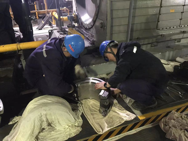 1月25日,农历大年初五,渭河发电#4炉烟道蒸汽长吹灰器L2在运行中故障,严重影响机组安全运行。情况紧急,渭河项目部立即检查分析,判断故障原因为吹灰器频繁过载而发生卡死,若不及时抽出卡塞的吹灰器,将在2—3时内被烧变形,整个吹灰器也将彻底损坏,要想尽快抽出吹灰器杆,全体人员只有徒手盘出吹灰器杆杆。42米高的锅炉平台上,即使戴着手套,也还是感到阵阵彻骨寒意,锅炉班值班人员两人一组,轮番上阵,一组换下来,手指都冻得僵硬。经过连续3个小时战斗,顺利完成了抢修任务。