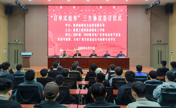 3月21日,公司与陕西工程科技高级技工学校举行“订单式培养”三方协议签订仪式,接受委培的4个“电力运营订单班”(电力系统班、热电班、新能源及电气班)共200余名学生参加活动。“订单班”校企合作模式是公司联合集团内部优质培训平台为企业人才梯队建设布新局、拓新路的重要举措,是有效促进教育链、产业链、人才链与创新链有机衔接的积极探索。陕西工程科技高级技工学校党委负责人、校长李若飞、副校长穆广利、赵利参加签订仪式。