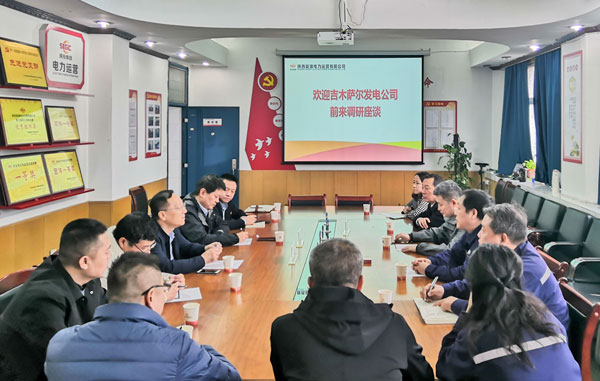 3月23日,吉木萨尔发电副总经理王万、田建文一行到公司开展调研交流。公司副总经理雷喜鸣、王安义、吴立功,渭河项目部、党委工作部及工会办公室相关人员参加座谈。