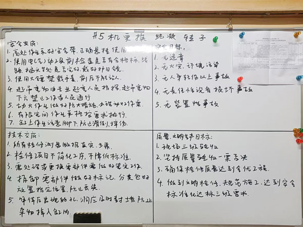 各专业严格按照工作清单开展工作,每天汇报完成情况。项目部随时掌握是否达到预期节点目标,及时调整工作进度。纯凝转子更换工作分白班夜班,全体员工每天加班延点,保证工作24小时不间断。