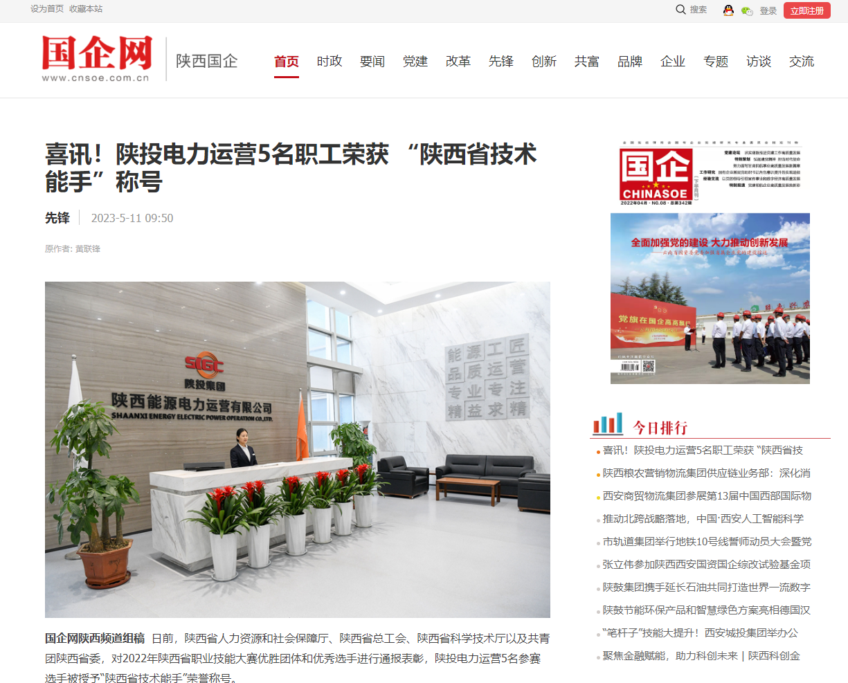 日前,陕西省人力资源和社会保障厅、陕西省总工会、陕西省科学技术厅以及共青团陕西省委,对2022年陕西省职业技能大赛优胜团体和优秀选手进行通报表彰,陕投电力运营5名参赛选手被授予“陕西省技术能手”荣誉称号。