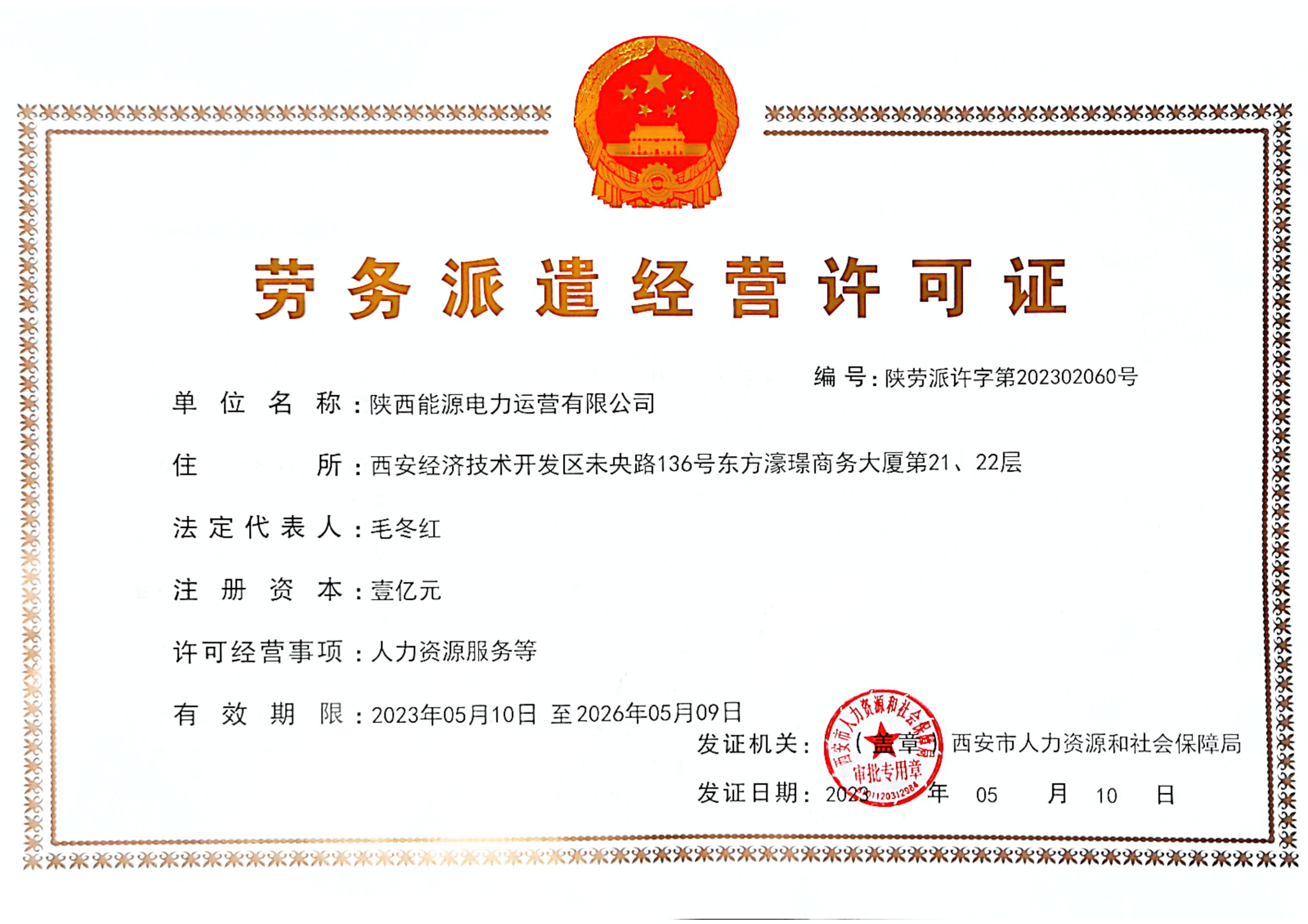 5月10日,公司顺利通过西安市人力资源和社会保障局评审,获得《劳务派遣经营许可证》,标志着公司人力资源支撑和服务能力迈上了新台阶。