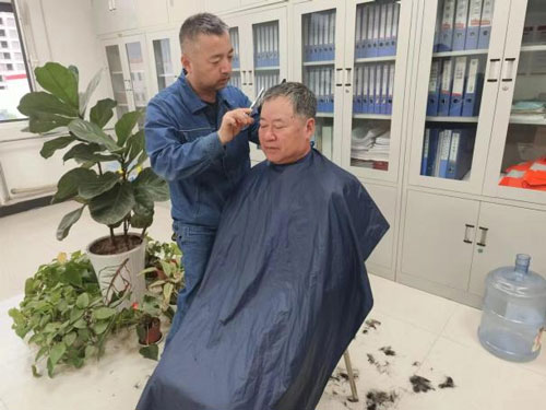 项目部职工曹文华夸道:“步师傅理的发型清爽又利落,别提有多精神了!”