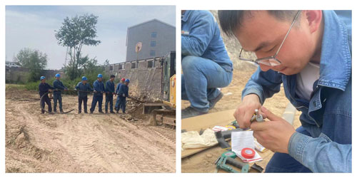 5月27日,清水川项目部驻地电源高压电缆被清理河道人员挖断,造成三处绝缘击穿损坏。项目部迅速响应,组织人员沿线排查故障点,并将电缆全部挖出,准备物料对其进行恢复。通过加班加点,对三处断线进行高压电缆中间头制作,将沿线电缆全部悬空,避免日后出现类似情况,于5月29日18:20完成送电,保障了用电可靠性。