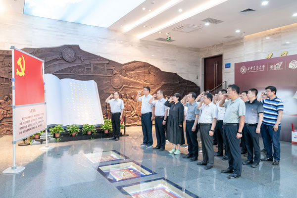 “我志愿加入中国共产党,拥护党的纲领,遵守党的章程……”铿锵有力的宣誓声响起时,每个人的内心都无比激动。在西迁博物馆,全体党员举起右手面向党旗庄严宣誓,重温入党誓词,牢记共产党员的政治责任和使命担当。