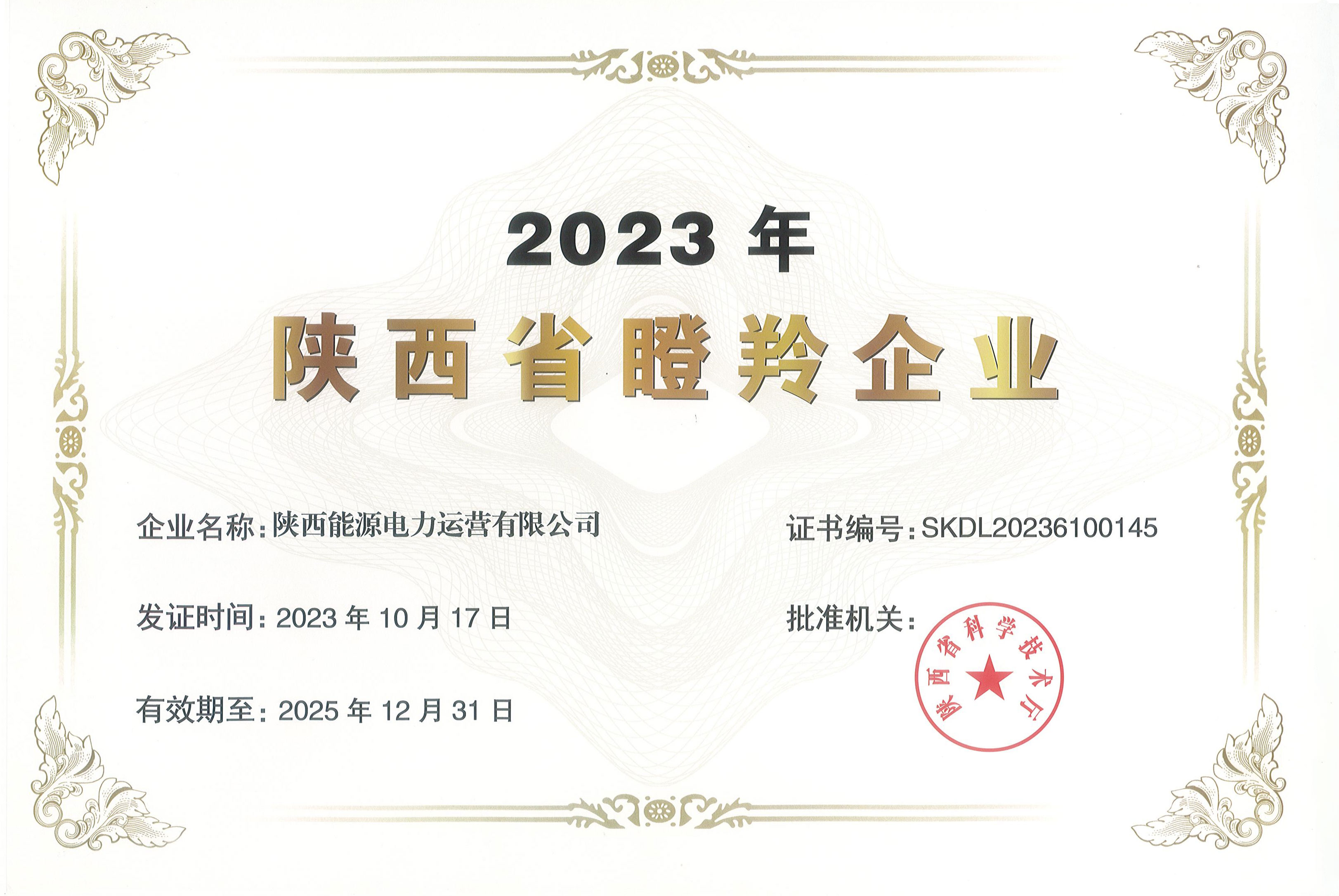 日前,公司成功入选2023年陕西省瞪羚企业名单!