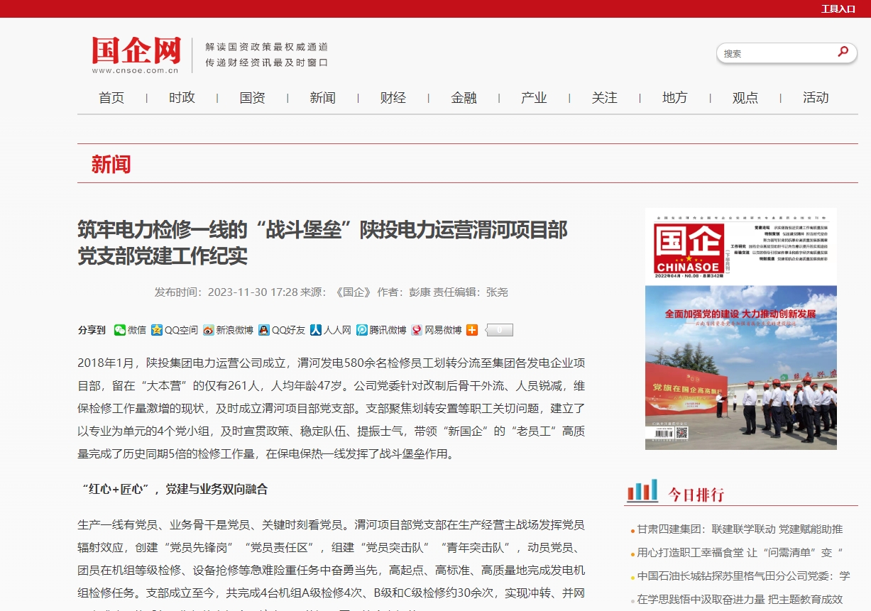 下一步,陕投电力运营将持续推进党支部标准化规范化建设“达标”率全覆盖、无遗漏,确保支部政治功能显得出、基础管理夯得实、发挥作用看得见,在建设国内一流能源服务提供商进程中持续释放党建温度,彰显党建力量,真正成为凝聚职工群众、服务改革发展的坚强战斗堡垒。