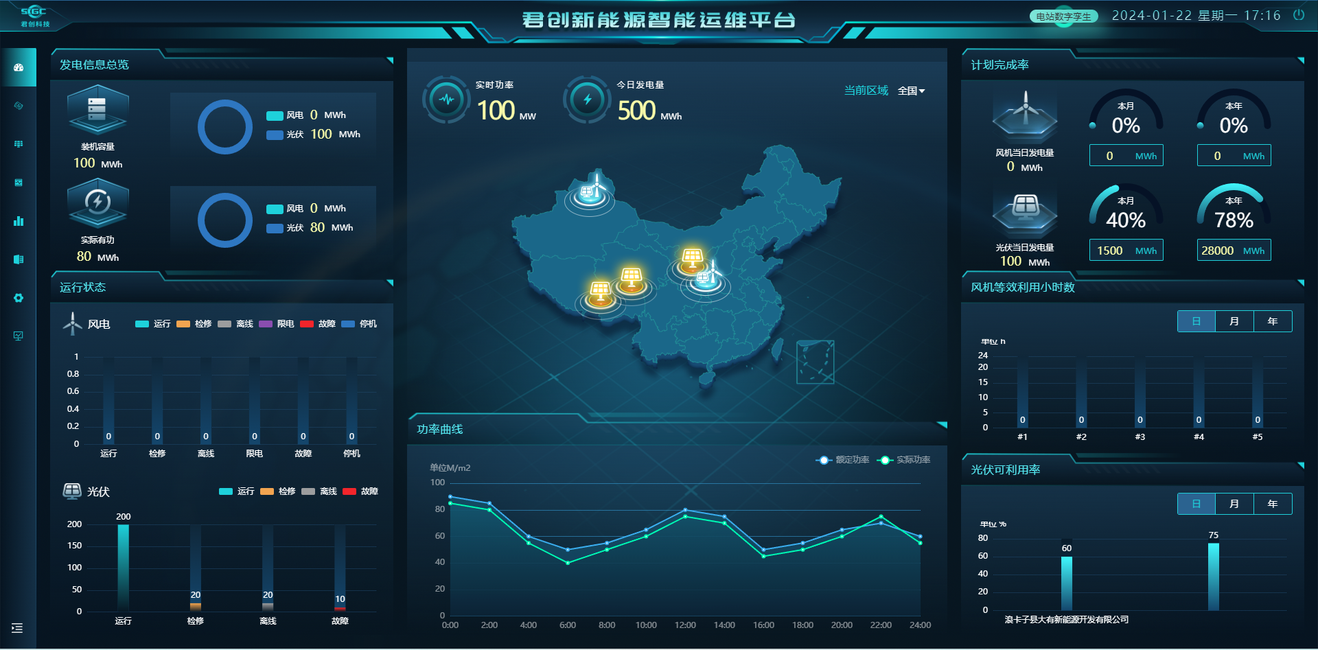 该平台是针对新能源电站研发的智能化解决方案,以故障诊断预测算法与设备健康管理策略构成的PHM体系为基础,涉及云平台、大数据、物联网、移动互联网等技术,面向各类新能源电站,通过设备状态在线监测及可靠性评估体系,实现“检修模式由周期检修向状态检修转变”“工作模式由单一安排向高效协作转变”“管理模式由分散式向系统一体化转变”。该产品拥有自主知识产权,有助于新能源场站进一步实现“无人值守”目标。