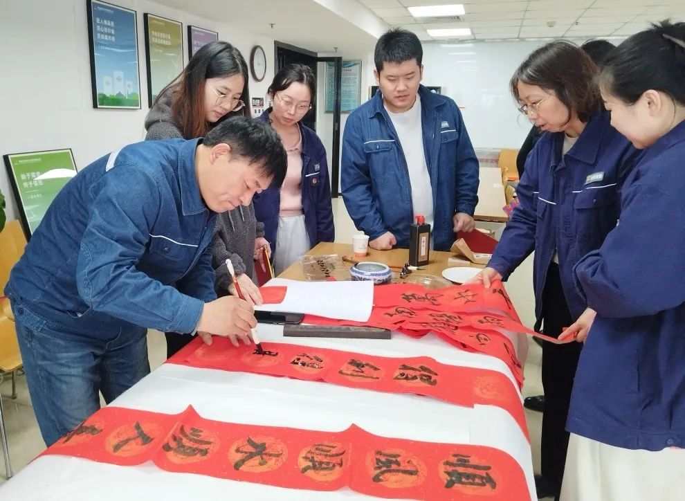 “龙腾四海春光好,福满九州喜气浓”“创大业千秋昌盛,展宏图再就辉煌”……活动现场,公司邀请的两位书法家和来自基层的书法爱好者挥毫泼墨、笔走龙蛇,一副副象征着平安和谐的春联,一张张寄托着吉祥如意的“福”字,包含着对个人来年工作生活的憧憬期许,寄托着对公司未来发展的诚挚祝愿。