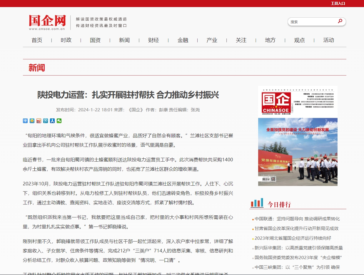 2024年,陕投电力运营将不断丰富帮扶内容、拓展帮扶途径,通过劳务输出、教育帮扶、技术支持及志愿服务等形式,助推乡村产业振兴,主动履行国企担当。