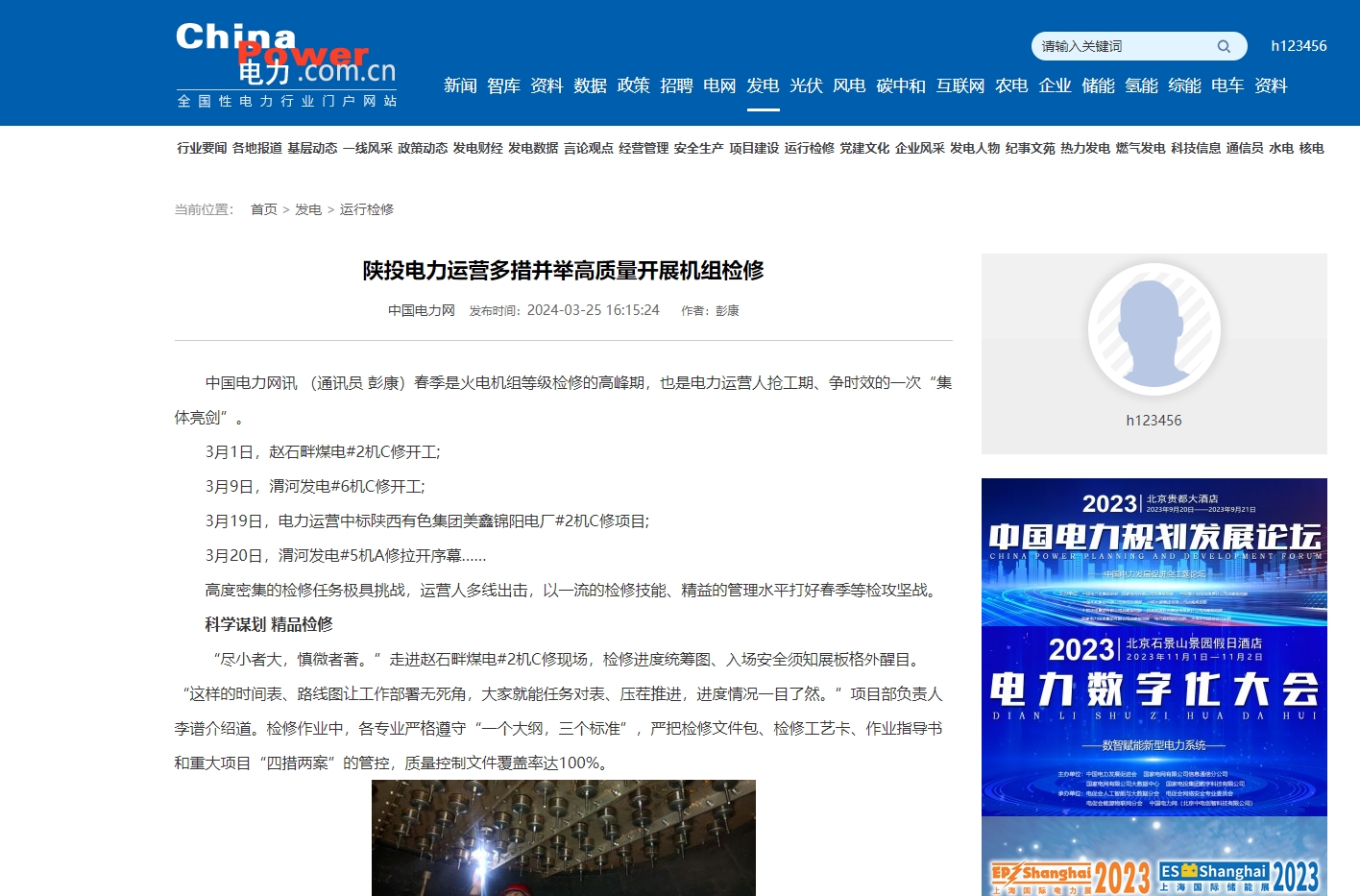 3月9日,渭河发电#6机C修开工;