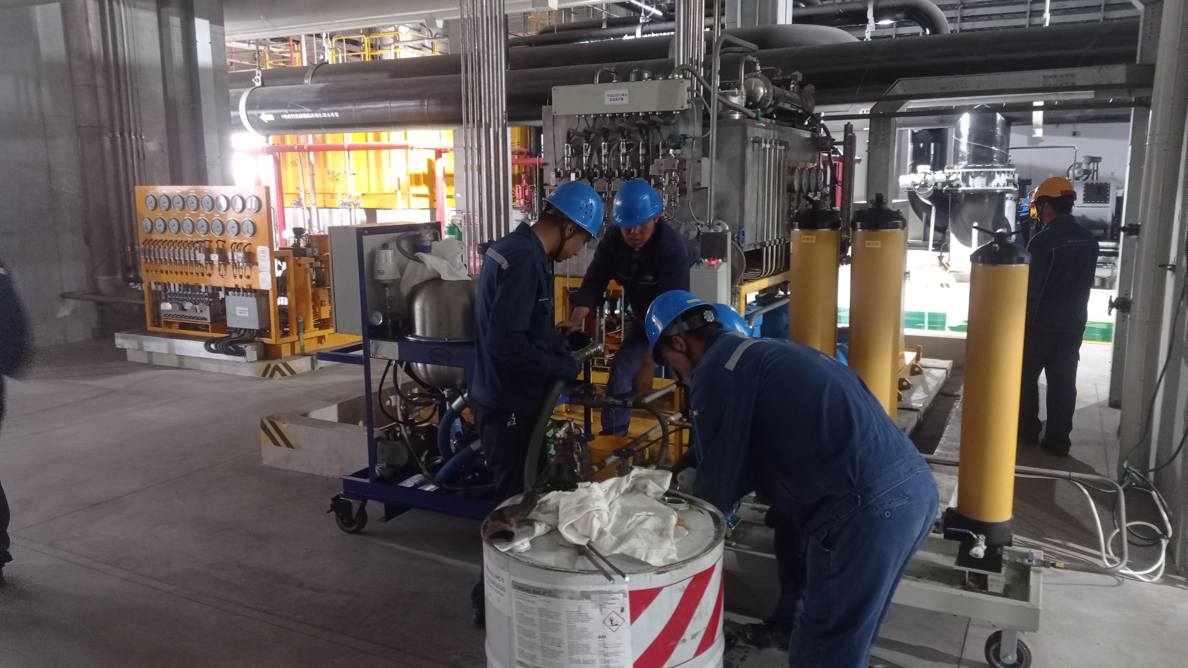 在这危急关头,富县项目部立即通知运行人员迅速降负荷,停运1A小机,隔离EH油系统。与此同时,汽化班成员立即进入应急模式,第一时间到达现场确定抢修方案。