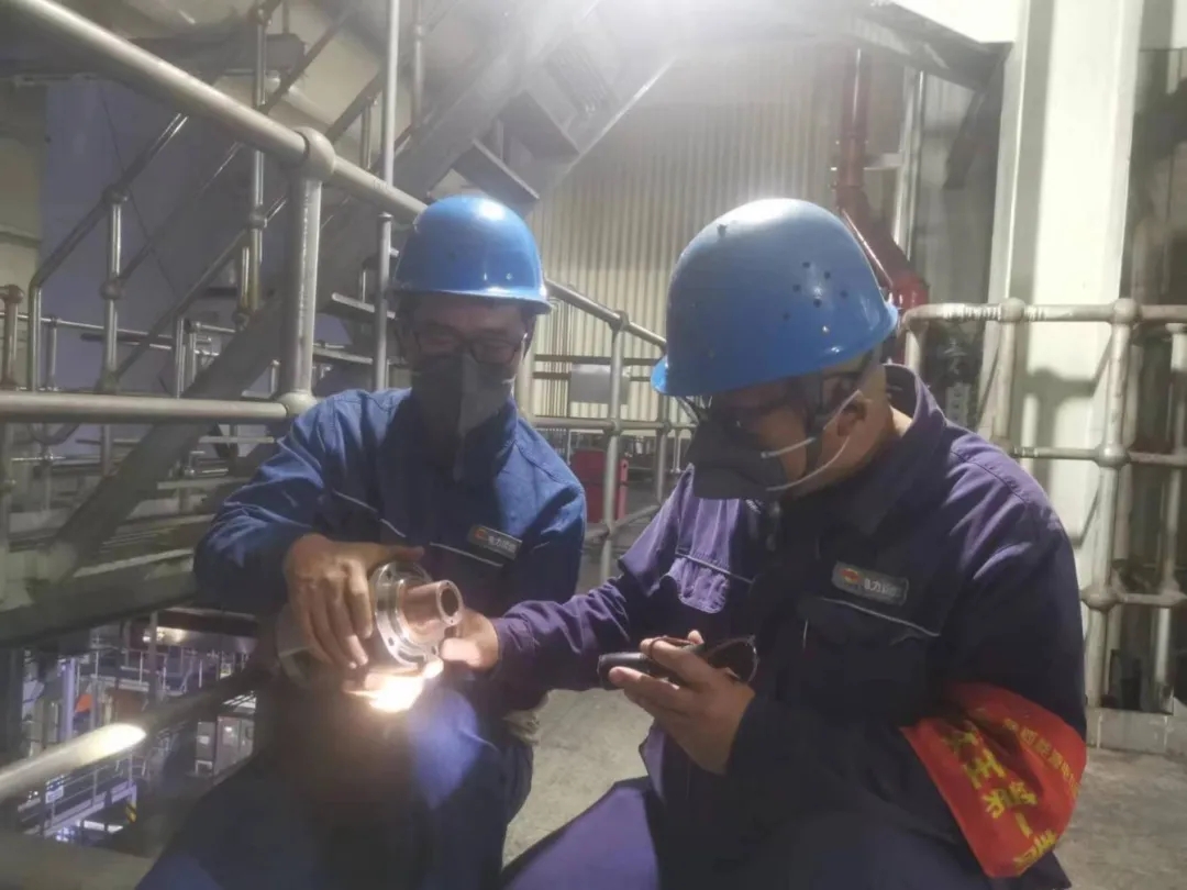 “师傅,你歇一会,我来!”这个穿梭于设备之间、汗水与灰尘交织在脸上的是灰硫检修班青工史普州正帮助师傅完成粗灰库内部清灰作业,两人紧密配合,可谓是最默契的“CP”组合。
