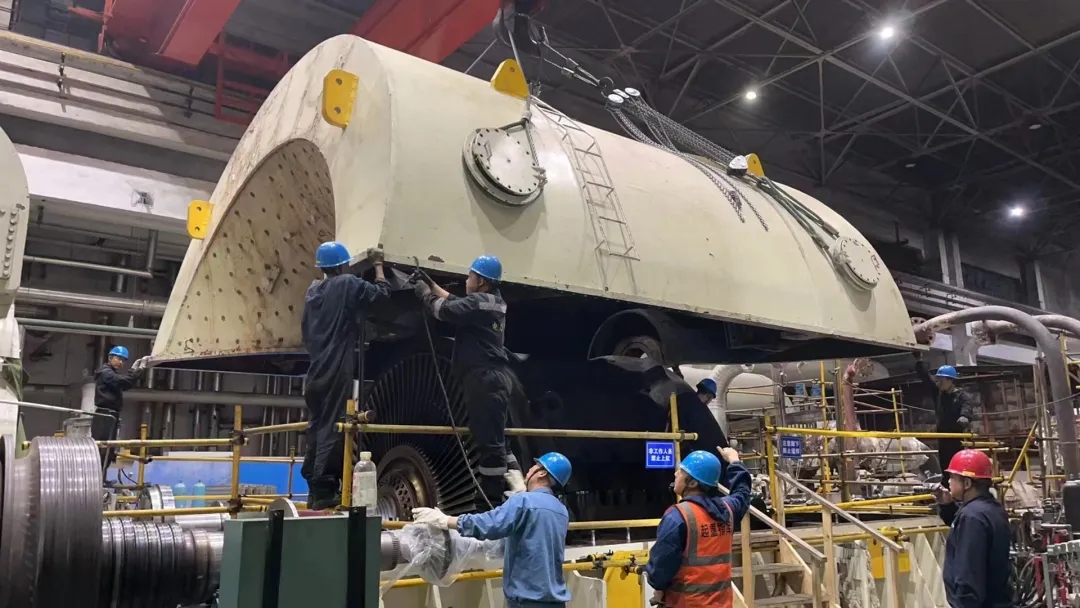 隔板螺丝紧固完成、内缸螺丝热紧完成......经过16小时奋战,低压缸平稳“对号入座”,汽轮机扣缸工作顺利完成,标志着渭河项目部#5机A修工作全面进入回装调试阶段。