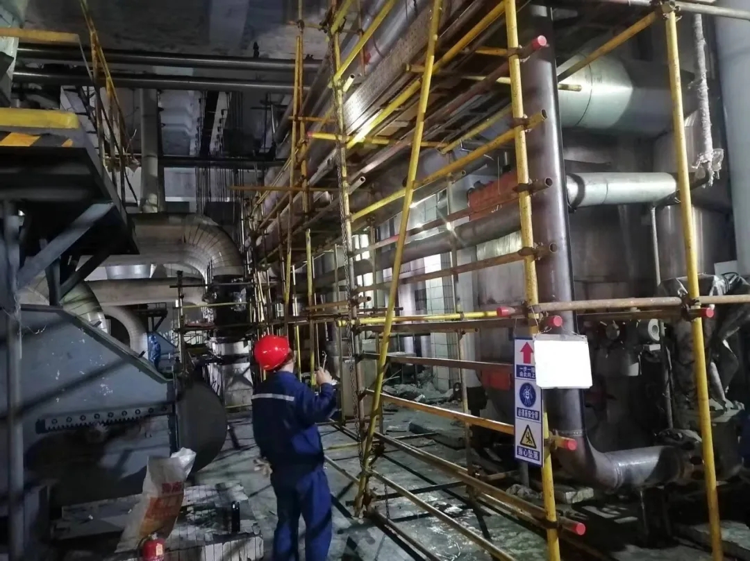 “退役军人突击队”成员王书龙负责本次等检所有脚手架搭设的安全监督检查。从人员岗前培训到作业“四措两案”的编制,从有限空间内部作业前的有害气体检测、人员登记到脚手架的规范搭设,从横杆端部的防撞帽、立杆下部的垫板到登高跨距标准要求、安全带的一步一跨,他事无巨细认真检查。现场的脚手架作业点他几乎每天都要走一遍,从不放过任何一个细节。
