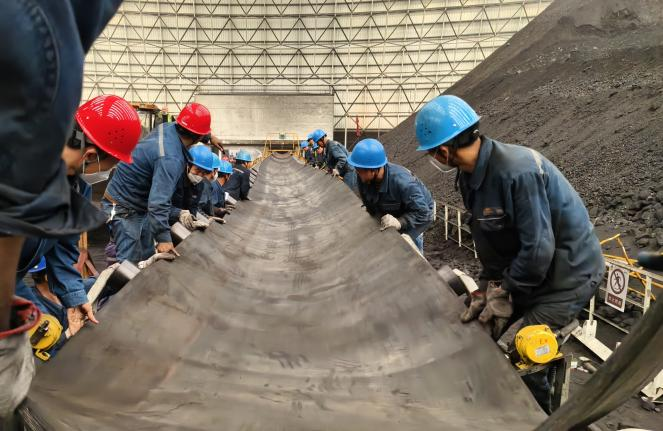 6月21日凌晨1:54,经过44小时连续奋战,硫化工具的拆除和皮带辊架恢复成功,崭新乌黑的输送带呼啸着沿托辊支架飞速行进。中心居正,轨迹稳定,宣告着这条输煤“主动脉”修补抢修工作圆满完成,保障了机组在夏季用电高峰安全稳定运行。