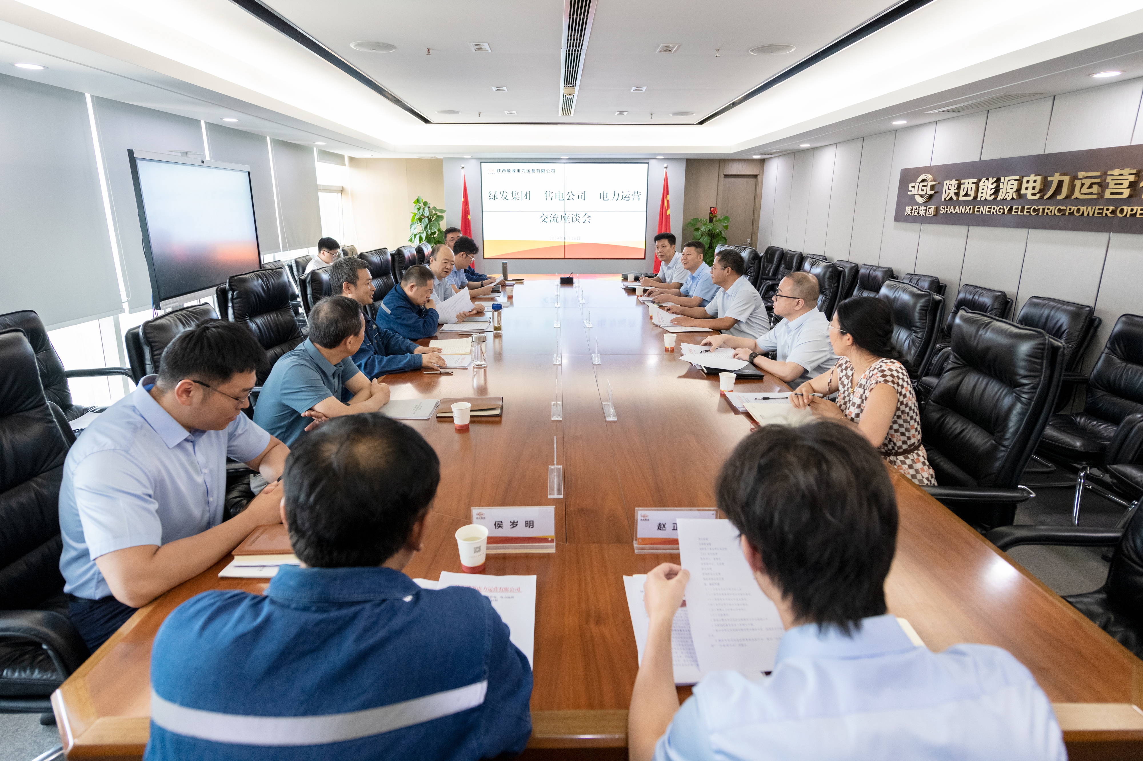 8月28日,公司联合陕能售电与陕西交控绿色发展集团座谈交流,就新能源场站运维服务、大客户售电、数字化融合等领域的业务合作达成广泛共识。交控绿色发展集团党委书记、董事长王小雄、总经理魏锋,陕西交控绿发智能科技有限公司董事长殷德宝,陕能售电总经理张红兵,公司党委书记、董事长张小锋,总经理雷喜鸣参加会议。