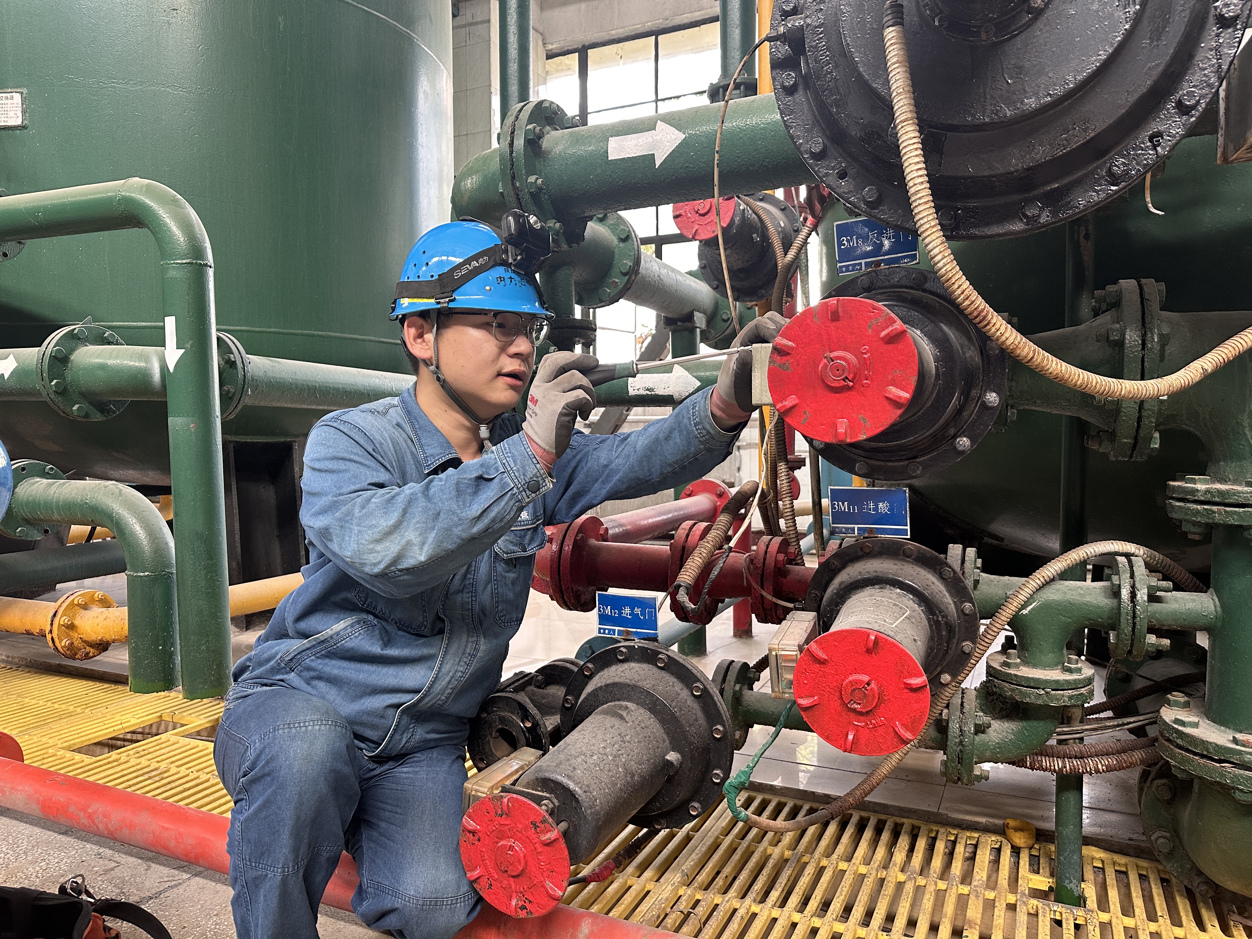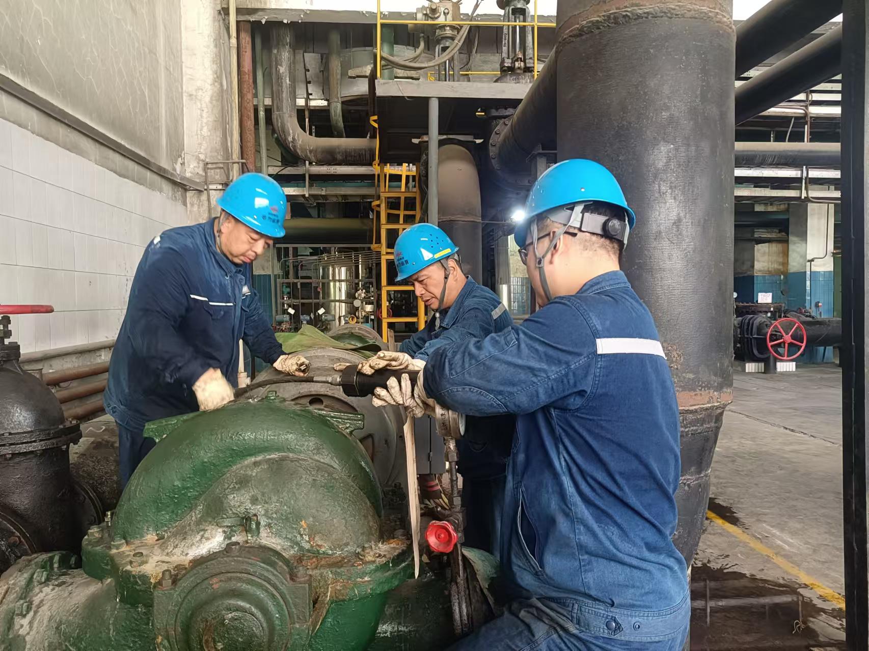 “大家都加把劲,这台设备可关系到整个机组的稳定运行,必须尽快维修好!”主机班解江波说完便拿起专用工具熟练地拆卸零部件。甲凝结泵消缺作业现场,温度高达40度,检修人员气定神闲地一遍遍盘动转子,拿出“绣花”功夫,对凝结泵推力瓦块逐个进行微调,来回近八个小时,工作服湿了干、干了湿,大家笑称是蒸“桑拿浴”,但却始终没有停歇,一心只想早点让设备运转起来,直到推力瓦块测点温度正常,设备运行平稳,工作人员悬着的心才终于放下。