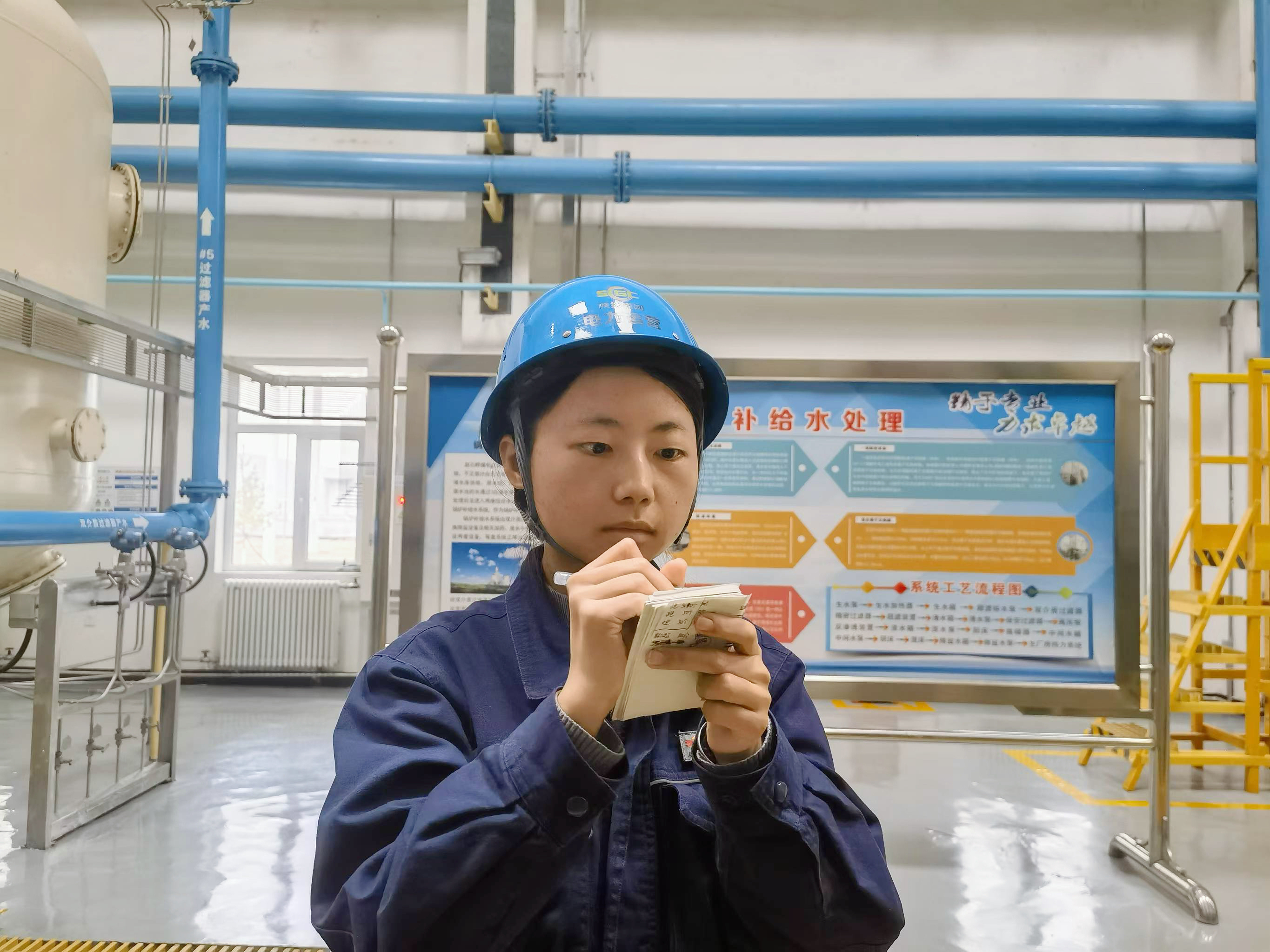 走进厂区的最后一道安全门,这座工业堡垒的巍峨在一众“蓝色安全帽”的衬托下愈加显著。机器的轰鸣声是运营人耳畔永远的乐章,电厂的夜晚并非那样安静,即使寂寥如黄土高坡,也难以掩盖机器所演奏出的力量之歌。