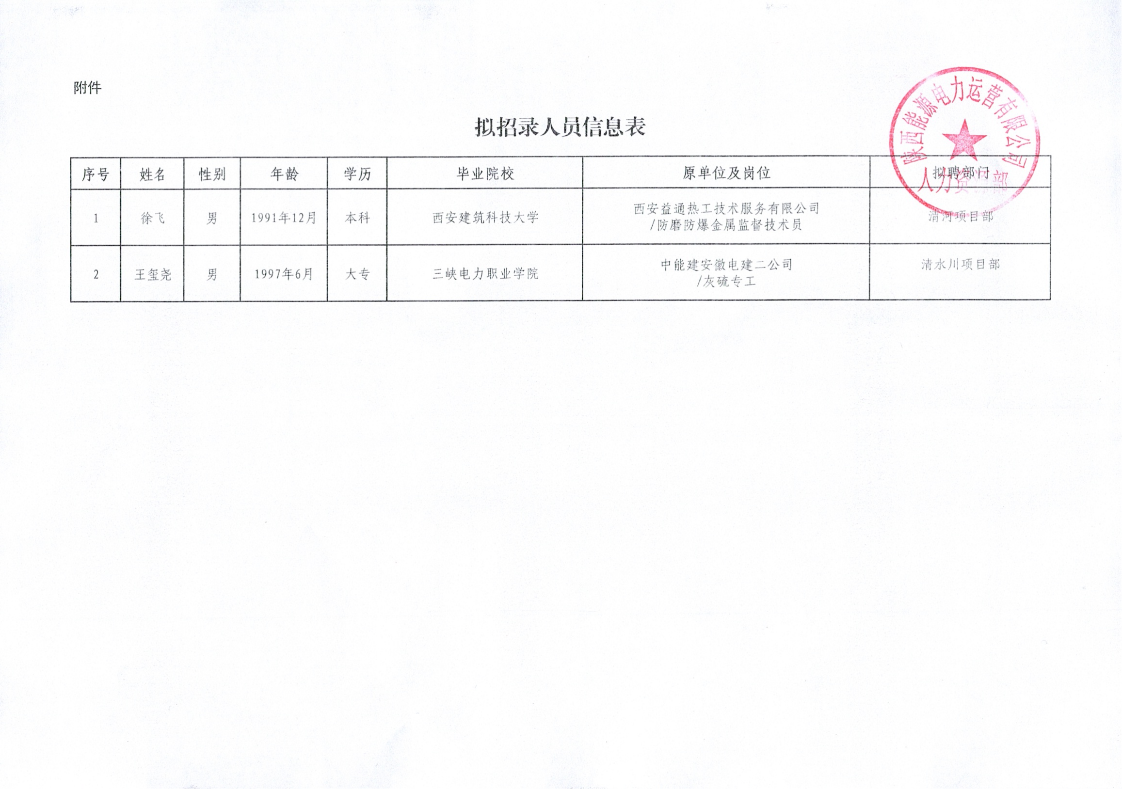 按公司发展需要,近期完成了部分专业人员的招聘工作,现对拟招录人员进行公示,如对公示人员有异议,请在公示期间内电话或邮件至公司人力资源部反映情况。