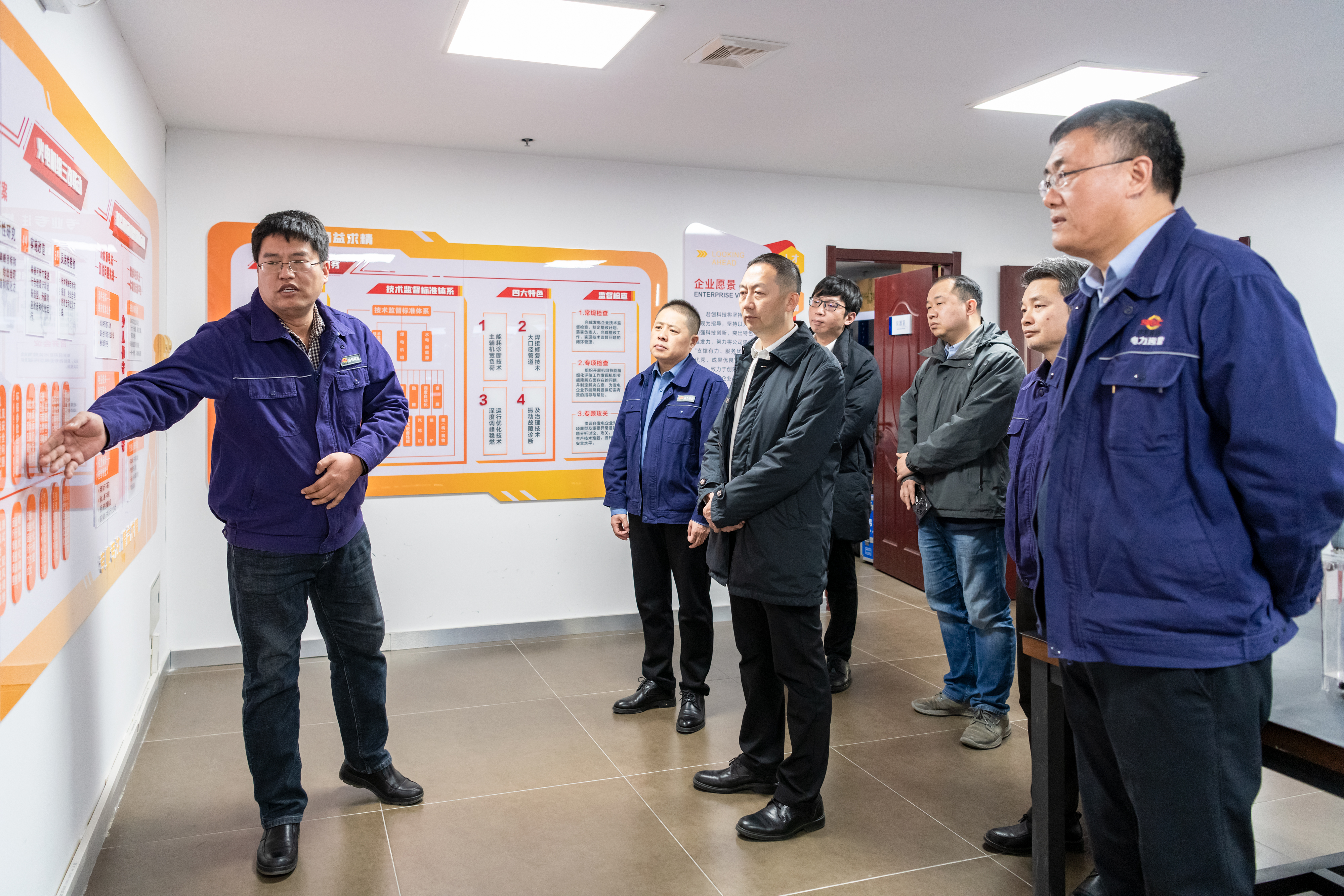 惠哲一行实地查看了公司展室,公司党委书记、董事长张小锋对近年来取得的专利成果、奖项荣誉、企业资质、创新成果等进行了介绍,君创科技副总经理魏江汇报了子公司检验检测、技术监督等工作开展情况。