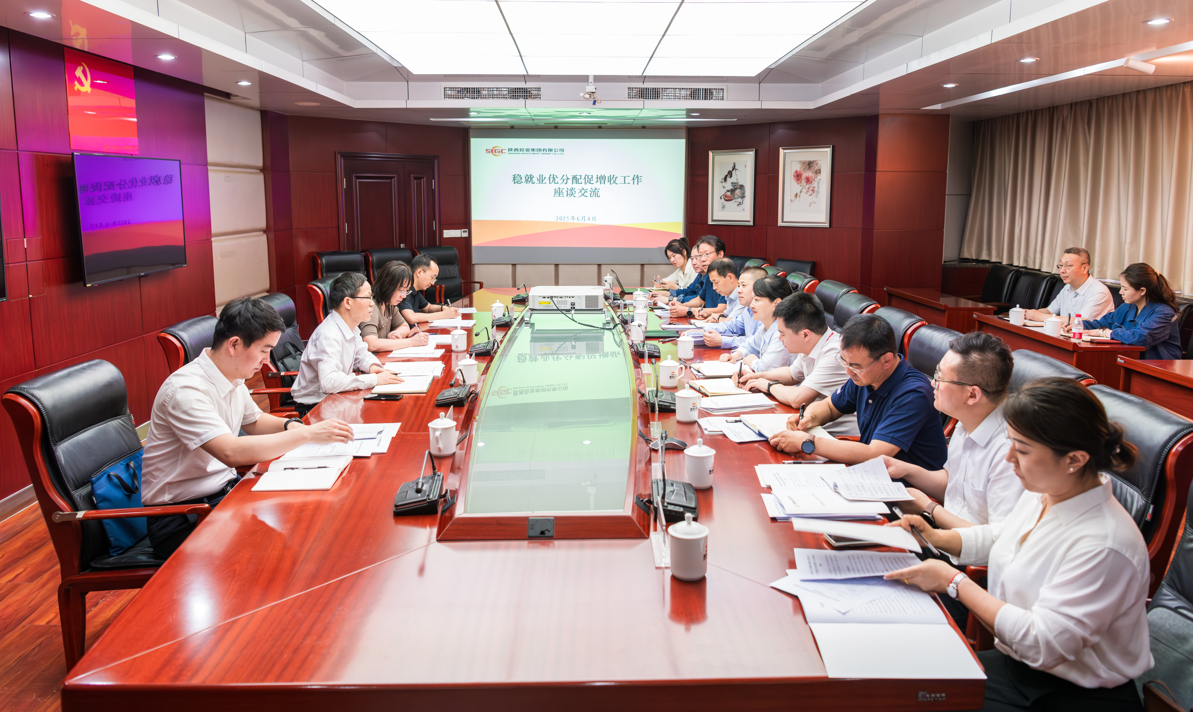 6月4日,省国资委党委委员、副主任韩绍安,省国资委二级巡视员李蓉一行到公司调研稳就业、优分配、促增收工作情况。集团党委副书记、职工董事、工会主席刘丽参加。