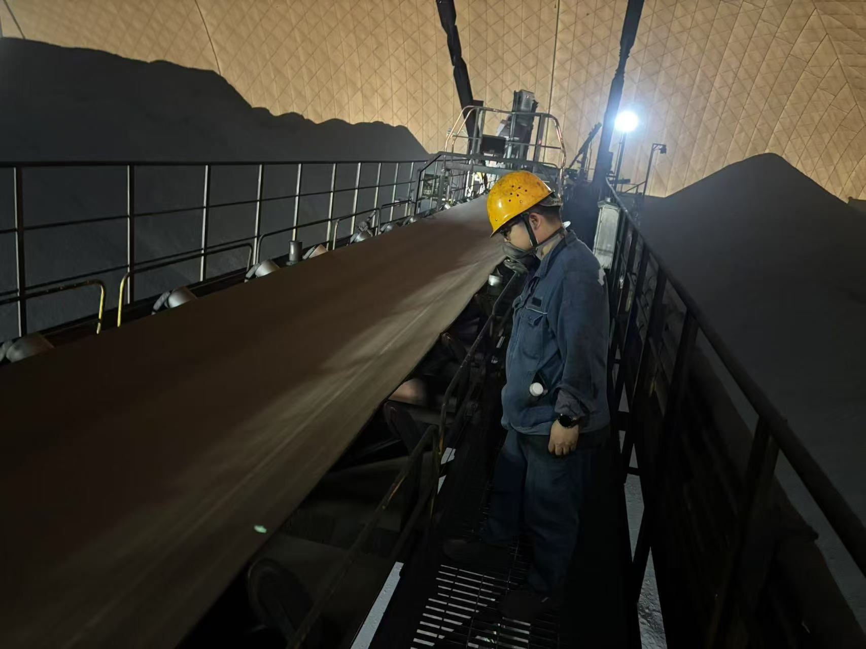绵长的输煤栈桥里,巡检员的身影是流动的安全哨。他们带着手电筒、测温枪、点检仪,反复巡视每一条皮带廊道,重点关注各落煤筒、滚筒轴承运行声响及温度、托辊运转状态、皮带是否跑偏、刮煤器效果等。豆大的汗珠浸湿衣衫,安全帽下目光锐利,不放过任何一个细微异常——螺栓松动、轻微跑偏、托辊异响……一旦发现蛛丝马迹,第一时间通过对讲机精准报修:“程控室,2号带尾部滚筒声音异常,请安排检修部门速查!”为检修赢得了宝贵时间。