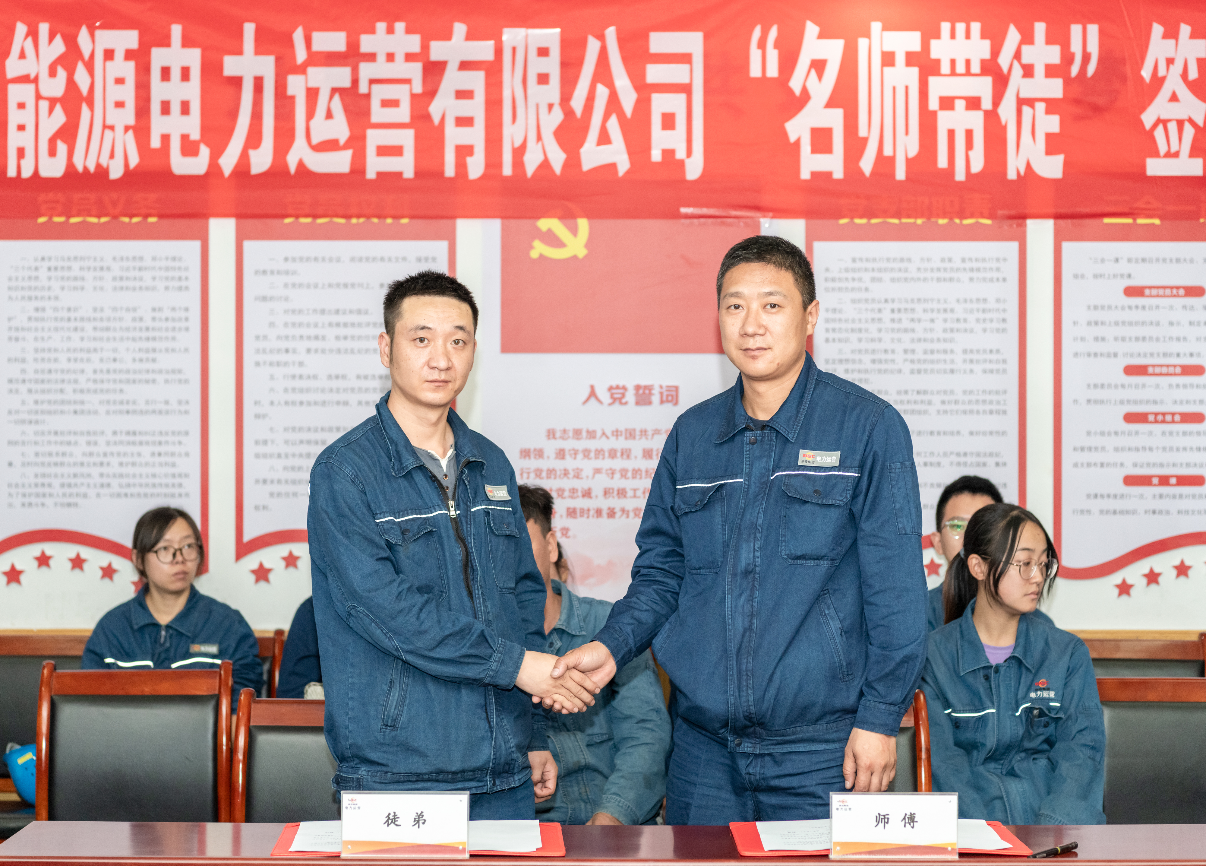 签约仪式上,公司宣贯了技能人才培养政策,由“全国技术能手”马鹏飞、“陕西省五一劳动奖章”获得者任江昆等4人组成的名师代表团,分别与7名徒弟签订名师带徒协议书。