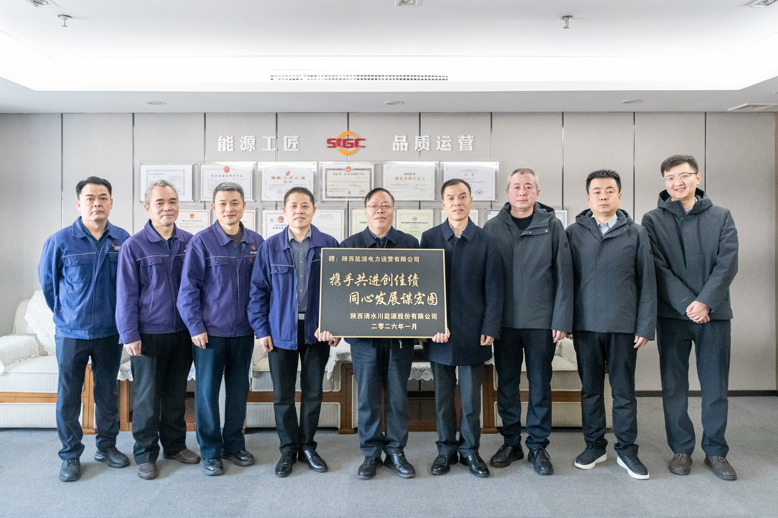 1月15日,清水川能源党委书记、董事长王军泓一行为公司送来感谢牌匾,对公司在保障机组安全稳定运行中作出的突出贡献表示感谢。公司党委书记、董事长张小锋,总经理雷喜鸣参加座谈。