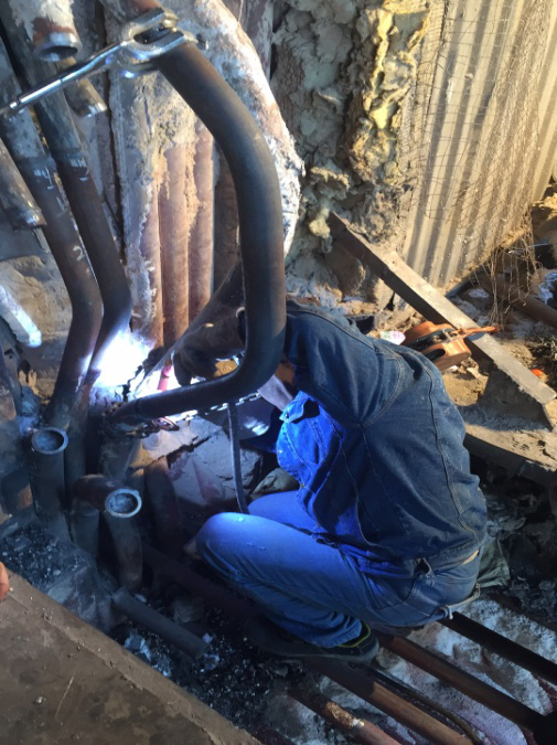 第一日早上,焊接水冷壁、壁再;下午,透视复检疏水管。次日,更换焊接减温水管流量计。