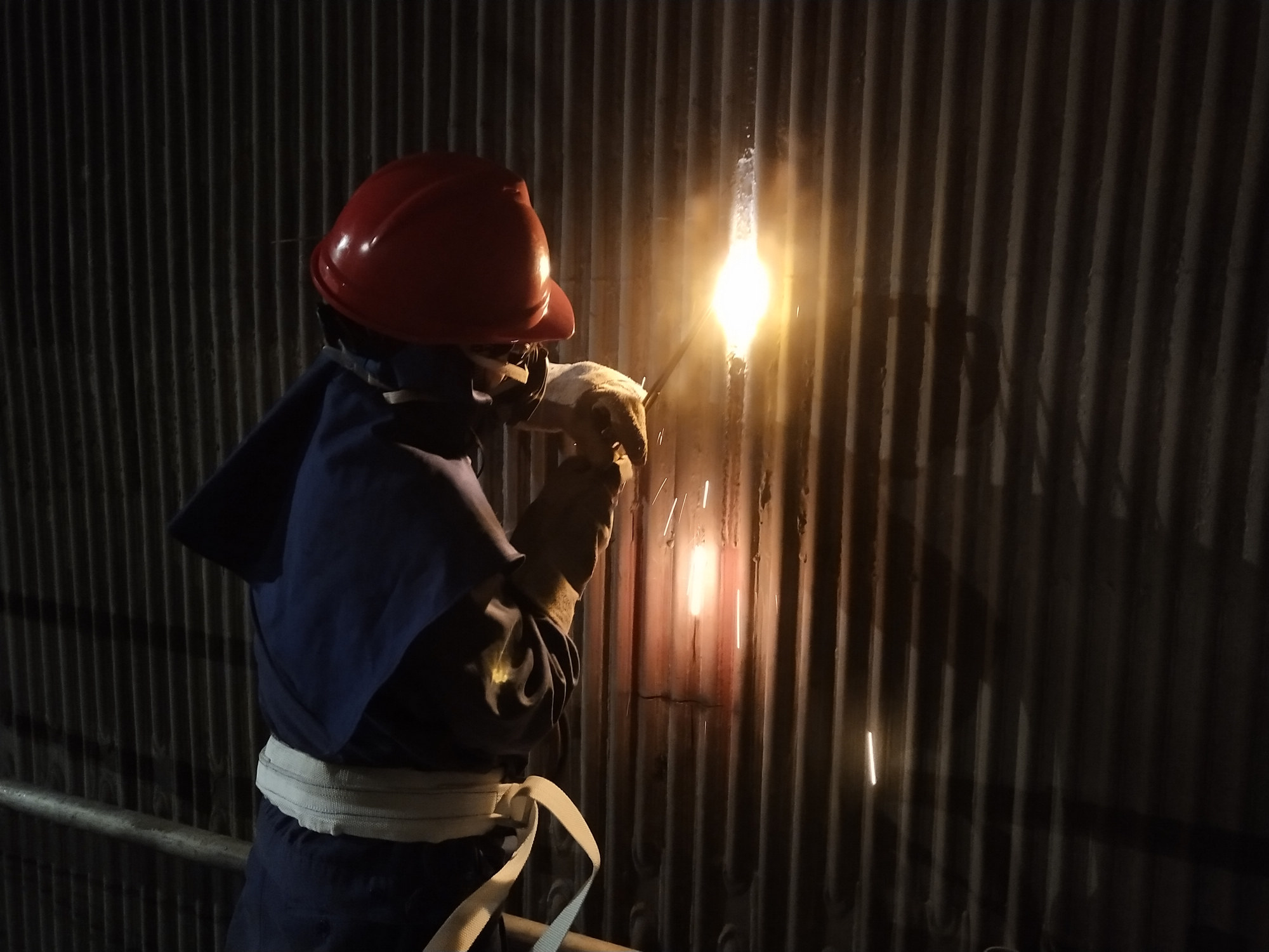 6月7日端午节,在万家团聚的日子,项目部锅炉班开始了#2炉水冷壁66根管道更换的前期准备工作。炉膛内,煤粉、保温渣,夹杂着铁屑飞扬。工作人员站在距地面56米高的脚手架上切除水冷壁管、制水冷壁管坡口、磨鳍片、清除管壁内外锈,各小组有条不紊地开展工作。至6月9日收假前,水冷壁管焊接前准备工作已全部就绪,为节后焊接工作的顺利开展,创造了条件。 (赵   涛   王武军)
